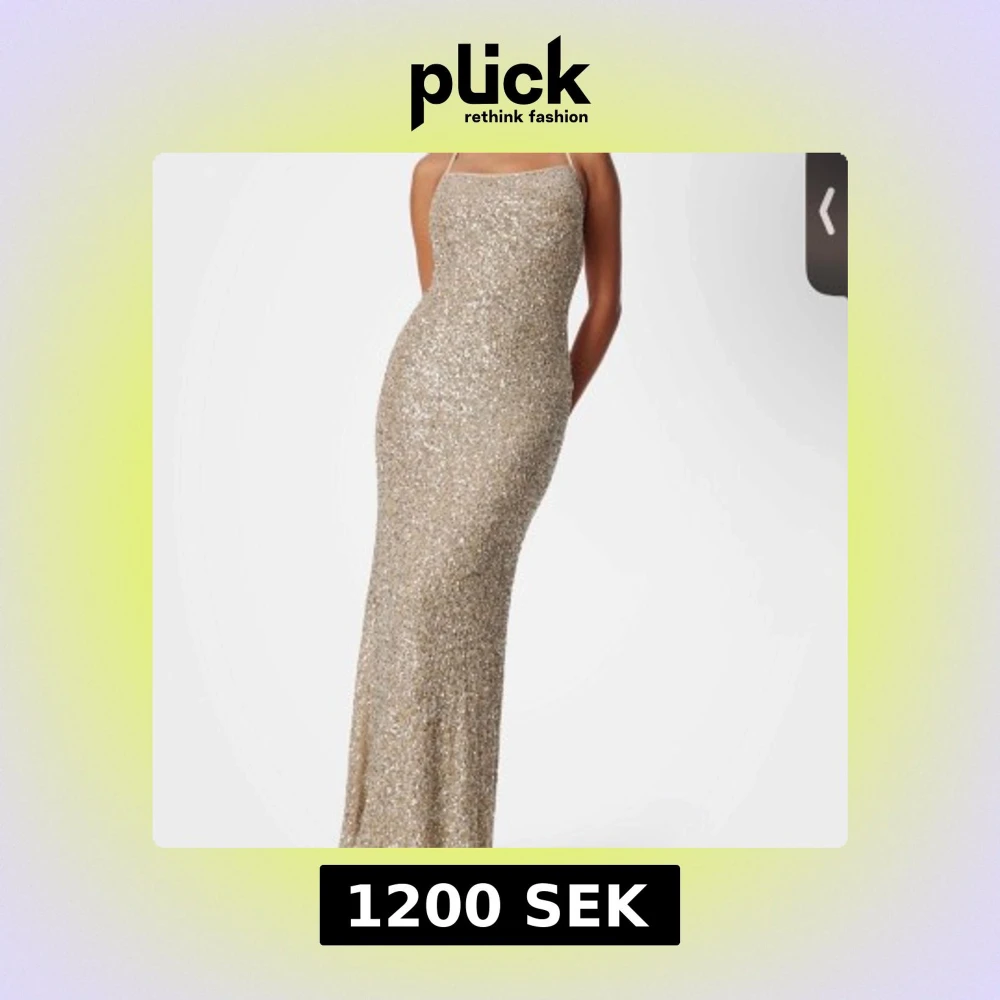 Säljer en superglittrig långklänning i guld med smala axelband och öppen rygg med knyt. Klänningen har figurnära passform och är täckt av paljetter som ger en lyxig känsla. Klänningen är aldrig använd och i super skick och perfekt för bal tillfälle. Köpt för 1600kr. Om ni har några frågor är det bara att skriva🌸