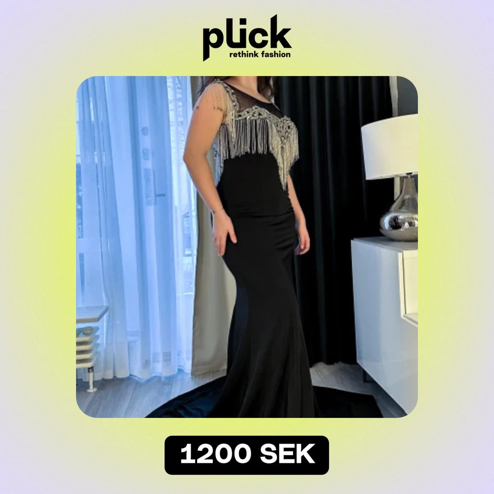 Svart klänning med strass- och stendetaljer i ett mjukare tyg med stretch ✨ Tillgänglig i storlek 12/40. HELT NY Modellen är ca 160cm lång (12,5cm höga klackar), och har vanligtvis storlek 38/40 @dressdeliverystockholm på insta för fler klänningar🫶🏼
