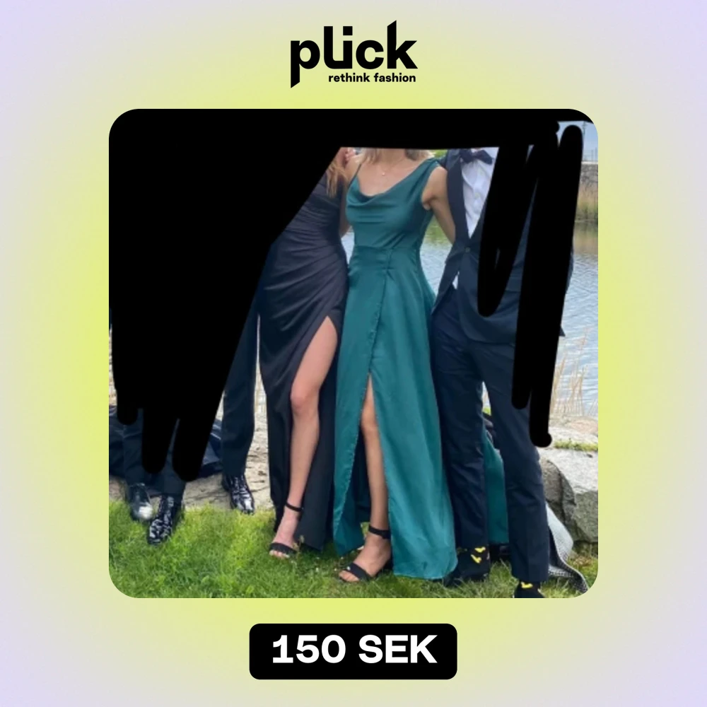 Superfin bal/festklänning i mörkgrön färg med slits och satin, använd 1 gång🌸 Stl S