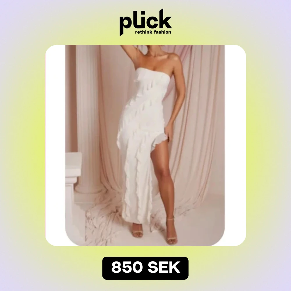 Så himla fin klänning som är krämvit! Perfekt till balen! Eller ett annat fint tillfälle, i stl 12 skulle säga att den är en M! Den är stretchig❤️Helt oanvänd med prislapp på! Mer blir kan fås🥰