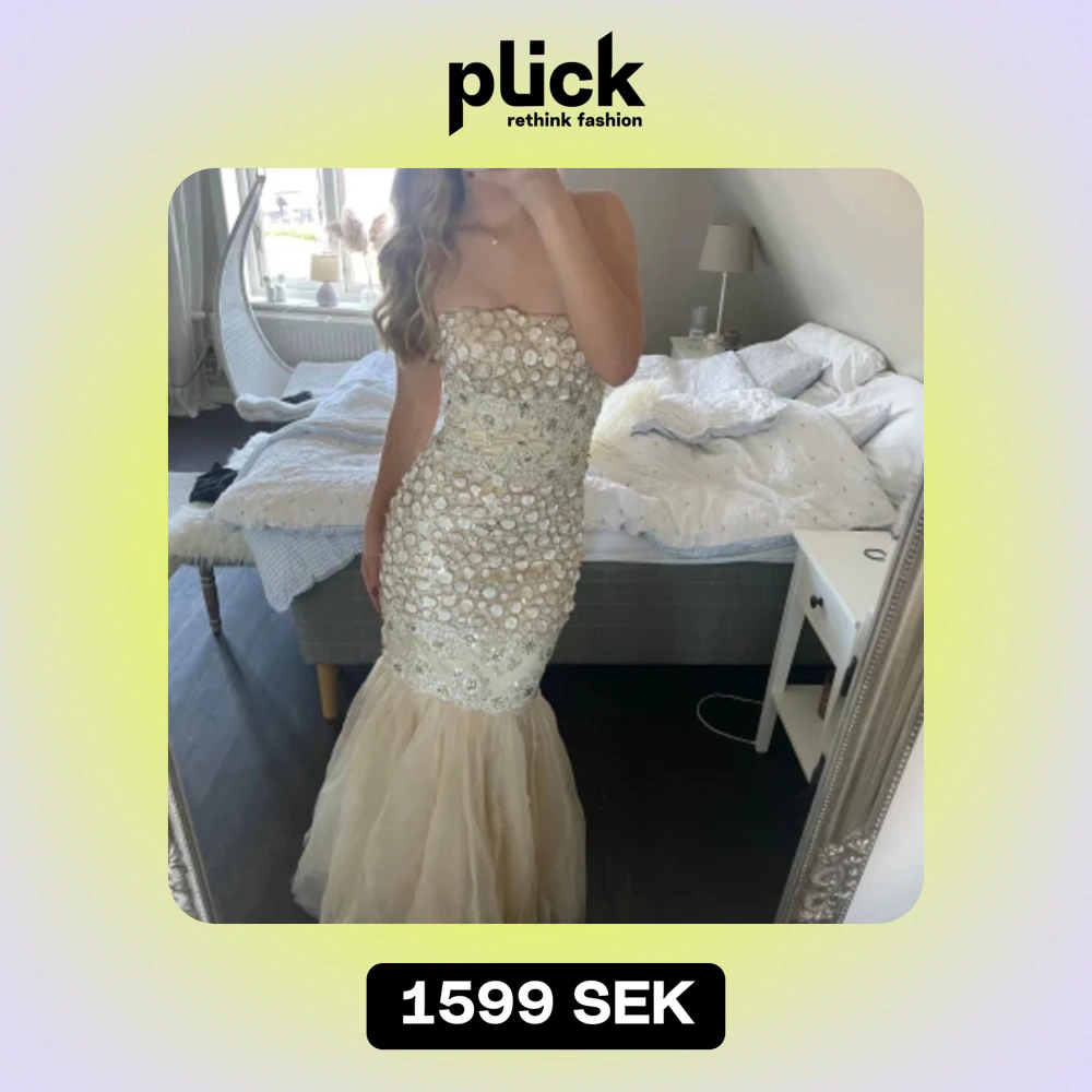 Säljer denna underbara balklänningen som är i så fint material!💛Klänningen är i storlek small och sitter väldigt smickrande på kroppen. Tillkommer även en sjal som man kan över armarna🫶🏼