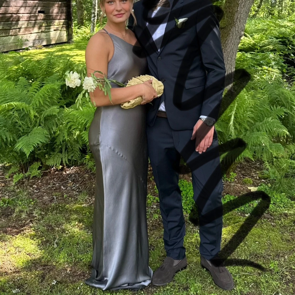 Superfin balklänning, använd endast en gång Köpt i strl 40 men insydd så den sitter som en 38/36 (min vanliga storlek). Justerbara band i ryggen som gör att du kan anspassa klänningens storlek ännu mer. Nypris 4200 kr. Enda “felet” är ett litet jack längst ner, men det syns inte när man har den på – kan även sys ihop. Jag är 168 cm och hade 3 cm klackar, men den funkar även med högre klackar och lägre (beror på hur man vill att klänningen ska falla) Tyget är rejält o lite ”tyngre”🩷
