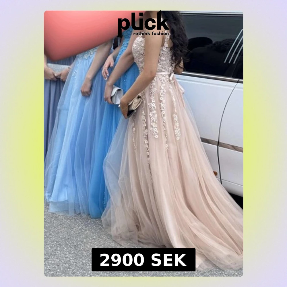 Säljer min älskade balklänning i en ljusrosa/rosabeige färg. Köpt på Dressroom i Göteborg för 5.500. Lite smutsig ner till då den har släp, men inget en kemtvätt inte kan fixa. Storlek s men passar en m lika bra. Köpt för 5500, säljer för 2.900. Får gärna komma förbi och testa och/eller hämtas upp vid intresse. Sjal att tex bära runt axlarna tillkommer, se sista bilden.