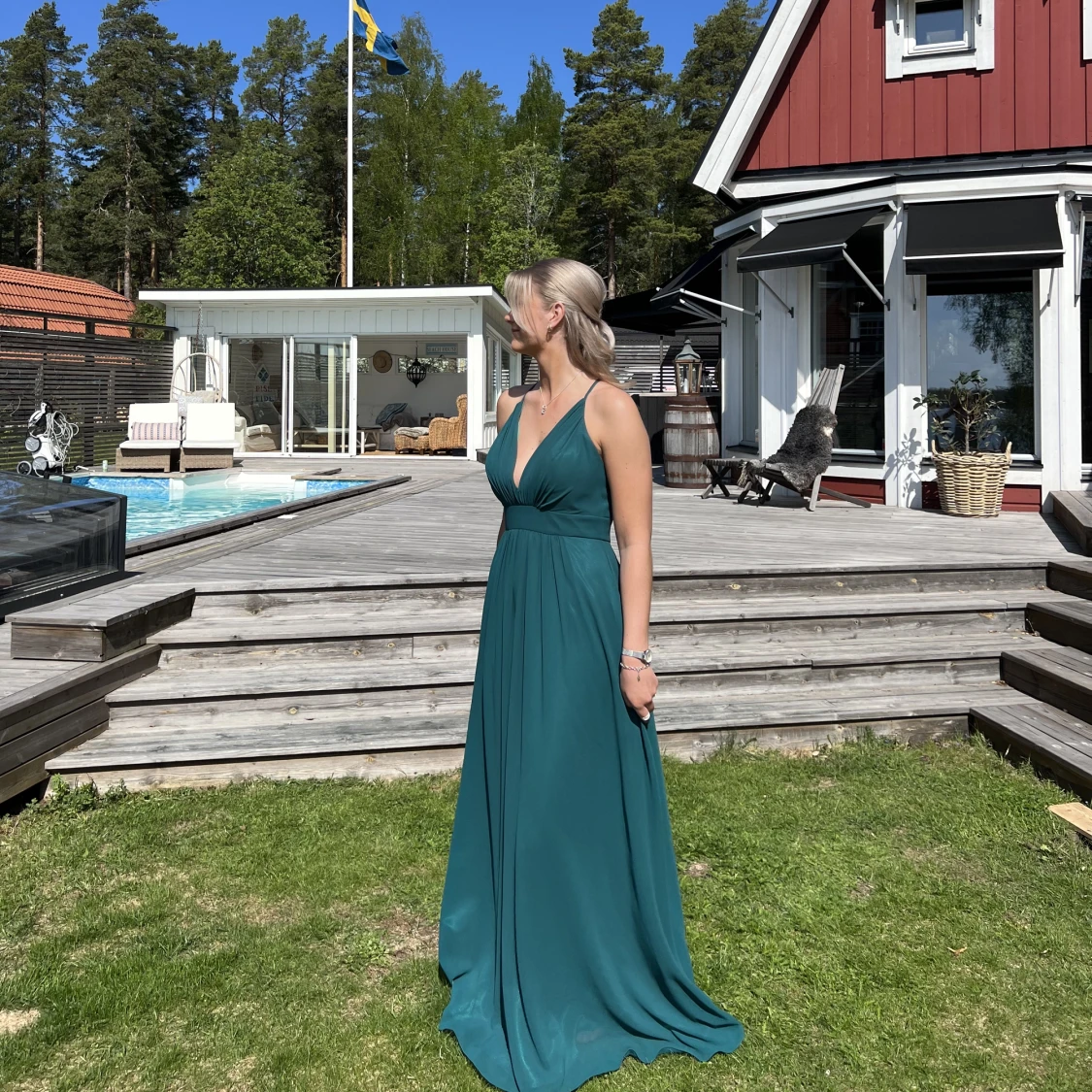 Säljer min superfina balklänning som jag har använt på min bal😍 köptes för 3000kr och endast använd på min egen bal