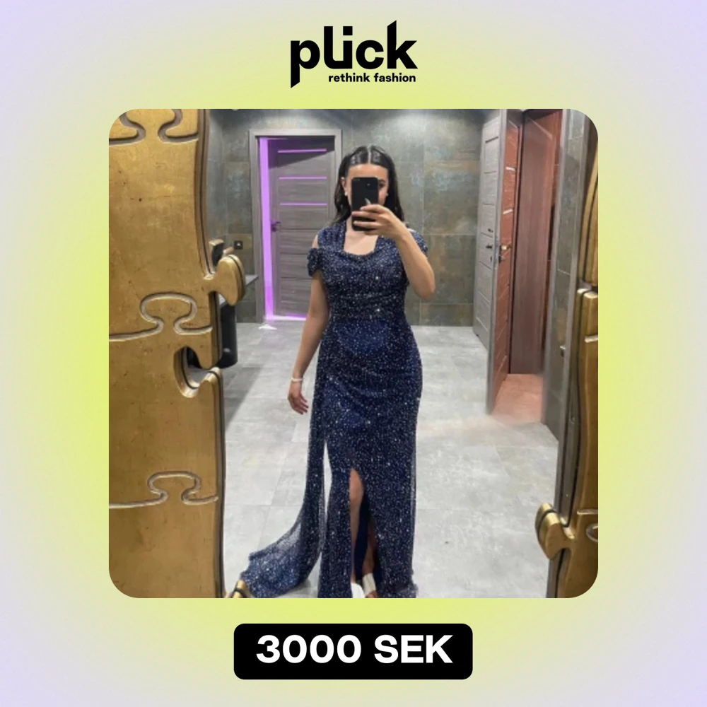 En mycket fin och elegant mörkblå klänning med slits och stenar, använt endast en gång. Storlek: 36 (passar även 38, jag själv är en 36/38 och den passade perfekt) Använt endast en gång. Köpt från Turkiet, nypris: 4000:- Mitt pris: 2800:-