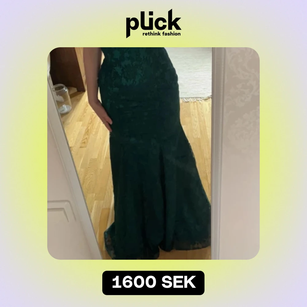 Fin balklänning, använd en gång. Mörk grön fin balklänning med ett litet släp. Jag har vanligtvis S eller M, 167 cm lång och den satt perfekt. Går att justera!! Hör av er om ni har frågor!