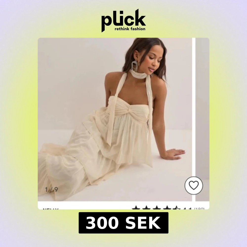 Balklänning från Nelly i storlek M. Den är aldrig använd men den har en fläck på nederkant av klännngek men syns inte när man har på sig klänningen. Lappen är kvar och säljer för att jag har hittat en annan klänning