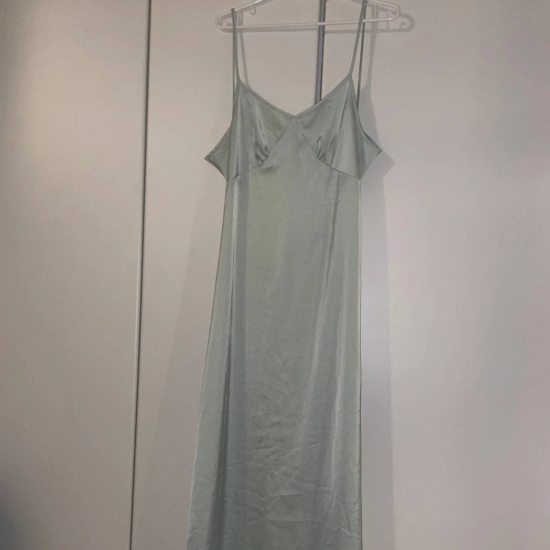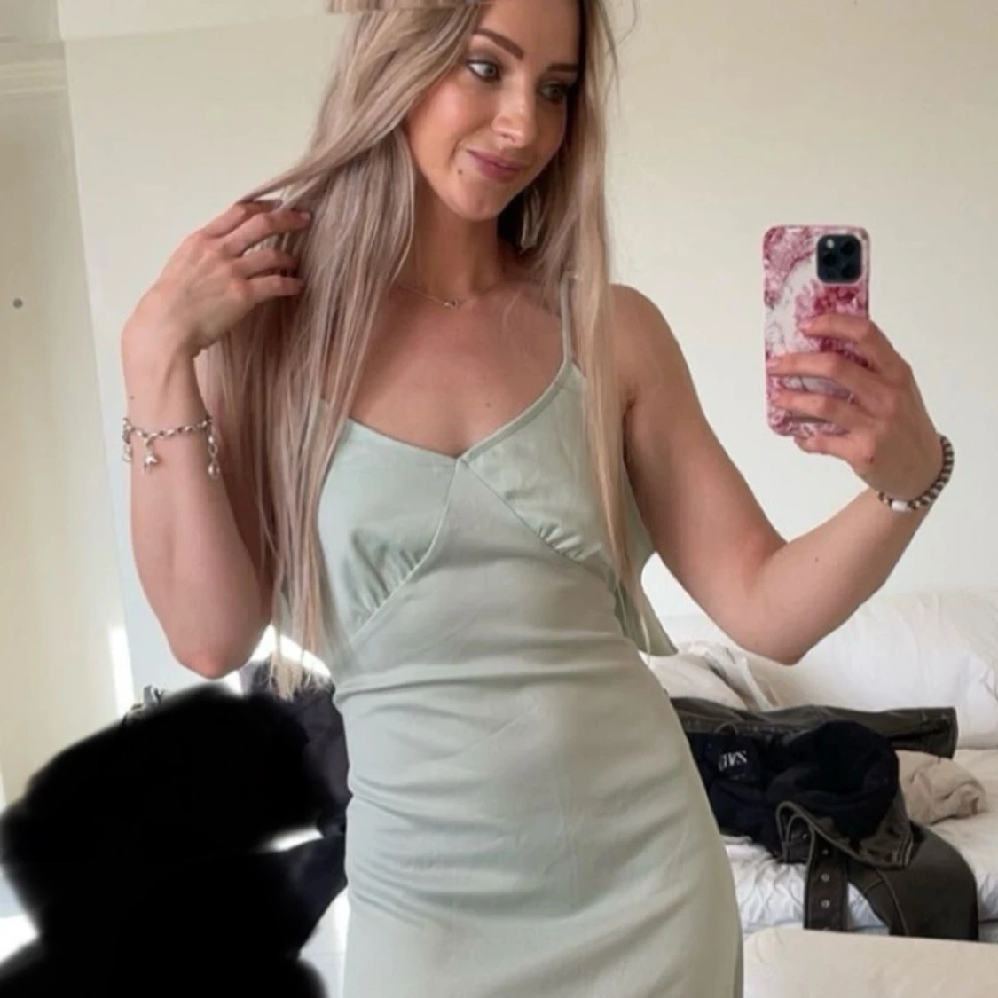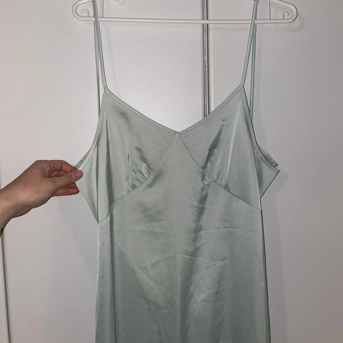 Superfin ljusgrön/turkos lång klänning med tunna axelband, perfekt till examen/bal eller liknande. Från NA-KD💕