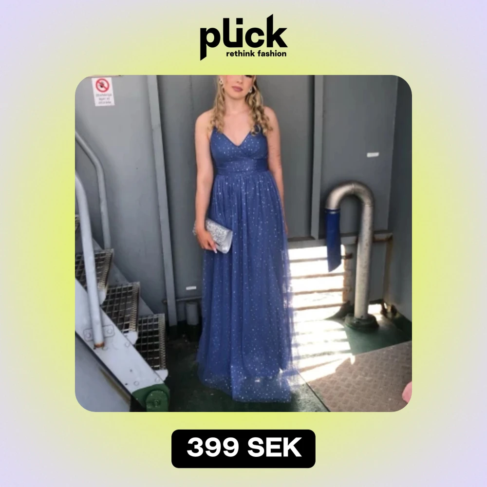 En jättefin balklänning. Använd bara en gång. Den går precis ner till marken och har ett jättefint slit.