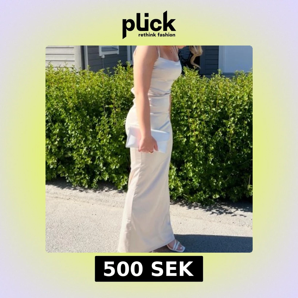 Supersnygg långklänning i champagnefärg med smala axelband och öppen rygg med snörningsdetaljer. Klänningen har en figurnära passform och är gjord i ett glansigt, satinliknande material. Perfekt till balen😍 Endast använd en gång, inga defekter!