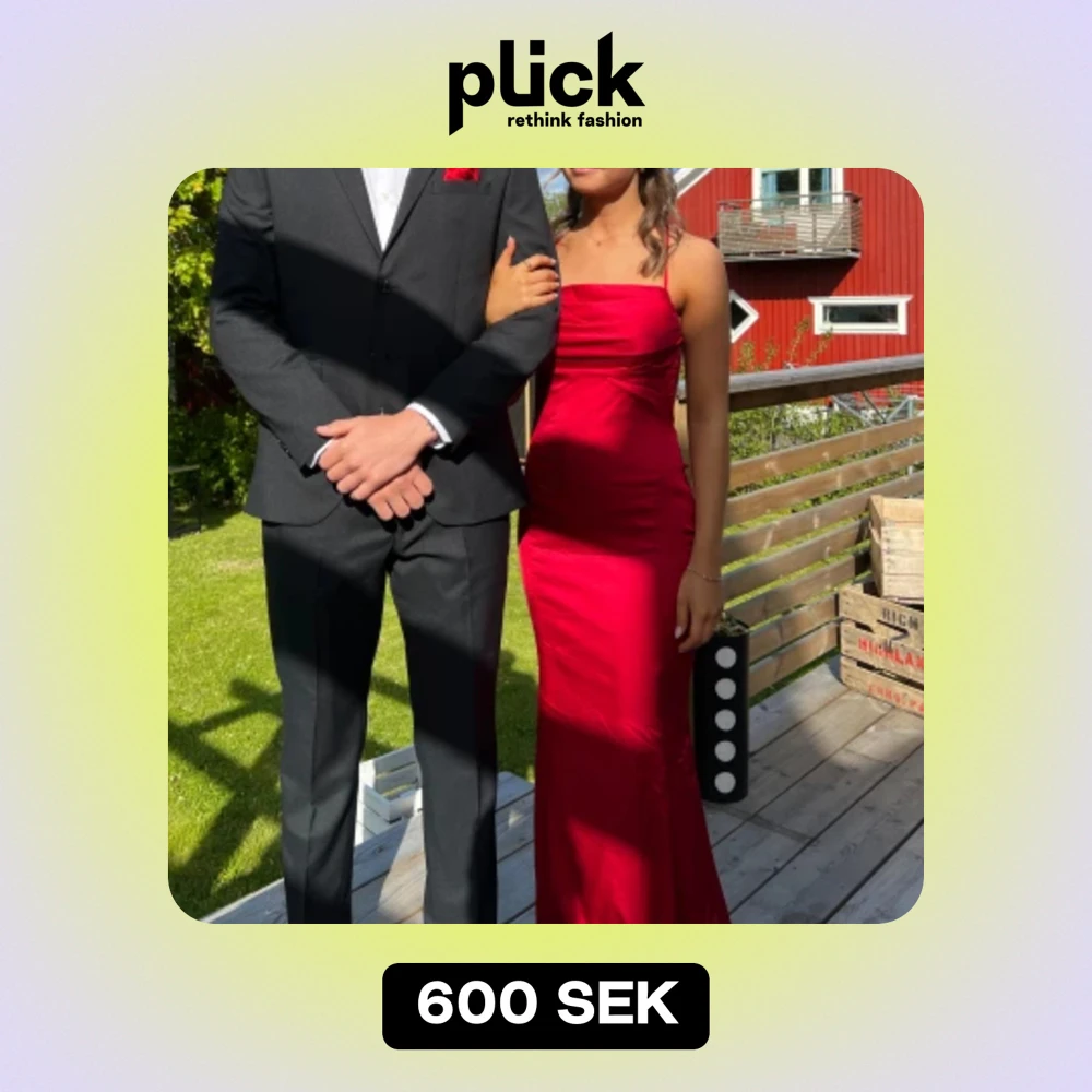 Röd balklänning med öppen rygg, jag är 160cm lång den är lite lång på mig men med klackar blev den bra i längden! Inga defekter eller fläckar på den 💕
