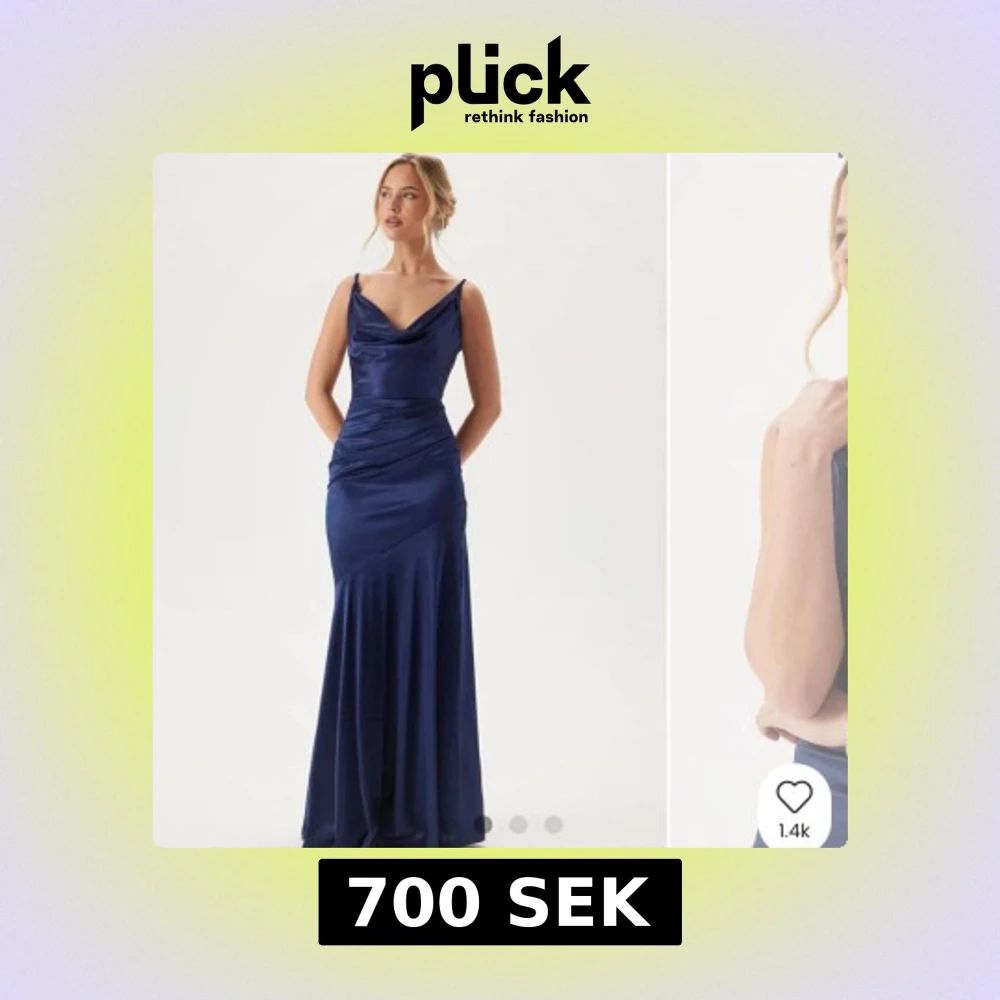 Säljer en elegant marinblå långklänning i glansigt satinmaterial. Klänningen har smala axelband, draperad urringning och figurnära passform som faller snyggt längs kroppen. Perfekt för bal eller festkväll! Helt ny med prislapparna kvar! Totalt slutsåld på hemsidan!
