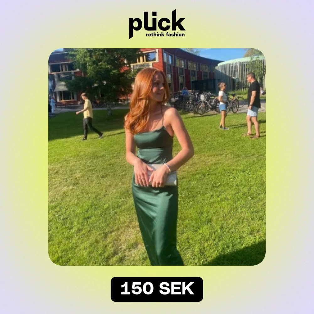 Satinklänning i grön st xs Enkel modell med snörning i ryggen och gulddetaljer (Bilden är lånad)