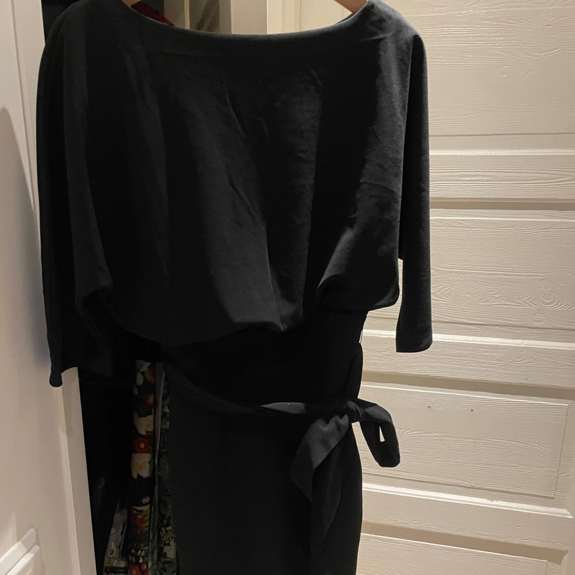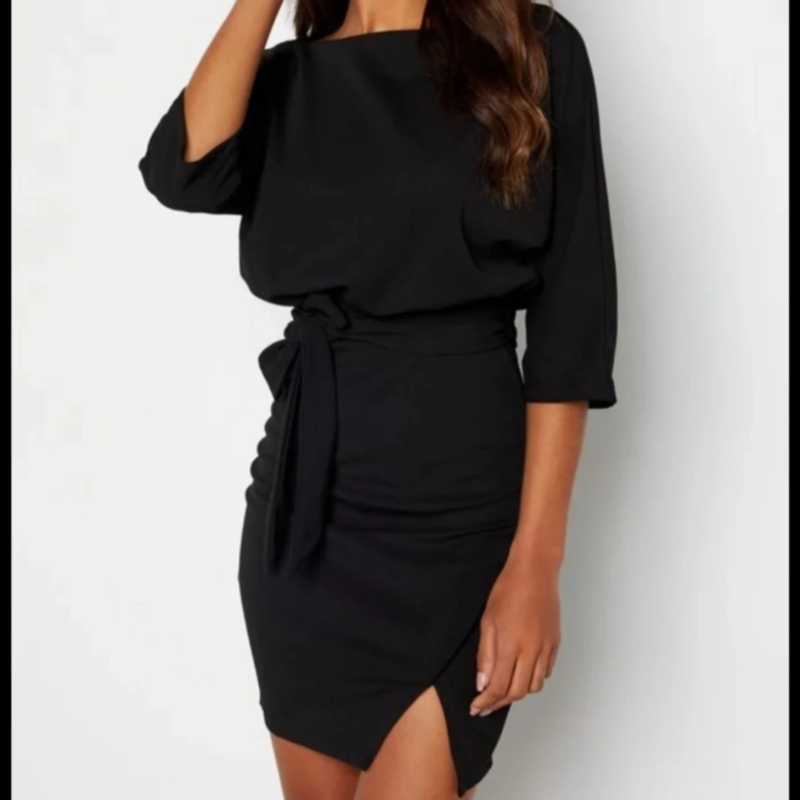 Elegant svart klänning från Bubbleroom med knytband i midjan, liten slith vid högra sidan och trekvartsärmar. Perfekt för en stilren look med en smickrande passform. Klänningen har en diskret dragkedja i ryggen. Klänningen har endast använts gång och är i bra skick. Den är i storlek 36. Originalpris mellan 50-60€. Kontakta för mer information🫶🏻