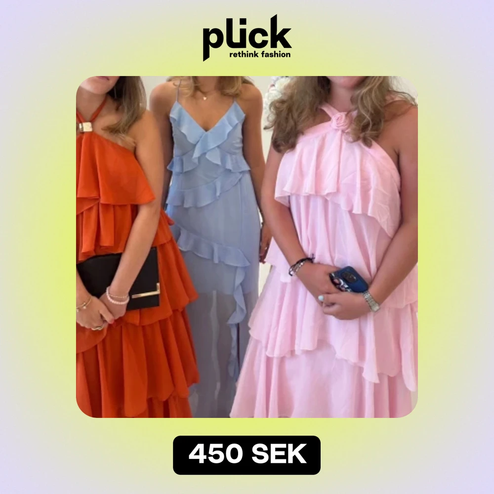 Sälje denna ljusblå långklänningen med volanger från veromoda. Superfint skick och endast använd en gång på ett bröllop. Är 1,67 och bär 7cm klackar på de. Skriv gärna vid frågor eller för fler bilder🫶
