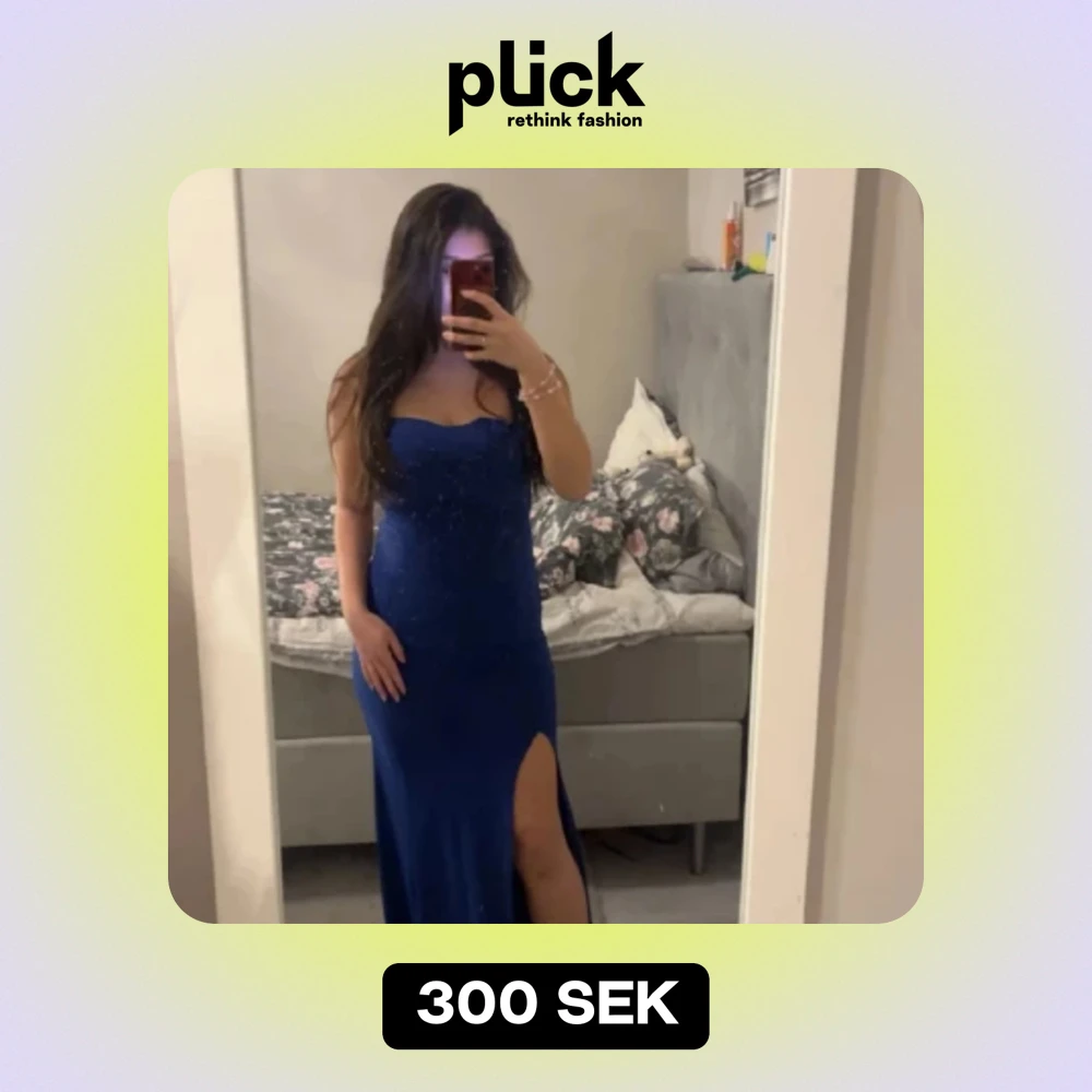 Jag säljer min balklänning som aldrig hann att komma till baldagen då den inte är använd. Jag köpte den för ungefär 700 men säljer den för 300. Den är i storlek s men kan användas som xs och kanske både M. Tyget är stretchig och är öppen i ryggen ben
