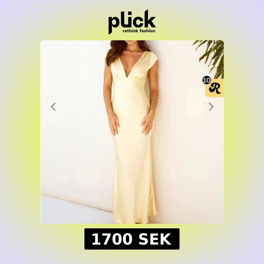 Elegant ljusgul långklänning med v-ringning och öppen rygg. Klänningen har korta ärmar och är tillverkad i ett mjukt, flödande material som ger en vacker siluett. Endast testad. Nypris: 1900kr