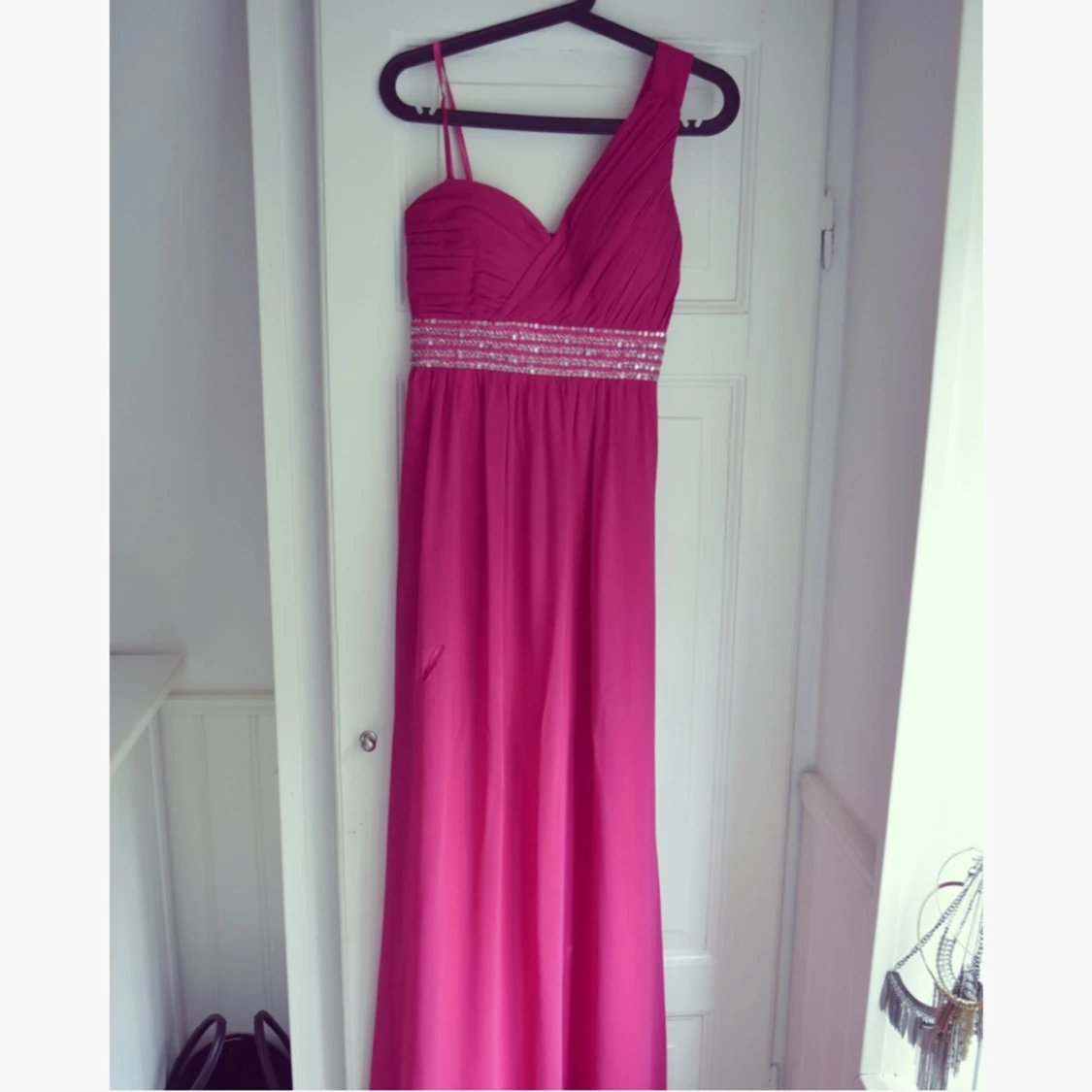 Elegant balklänning i flirtig färg! Jätteskön att ha på sig och enkel att röra sig i. Finns ett hål på framsidan som går att laga där av det låga priset!