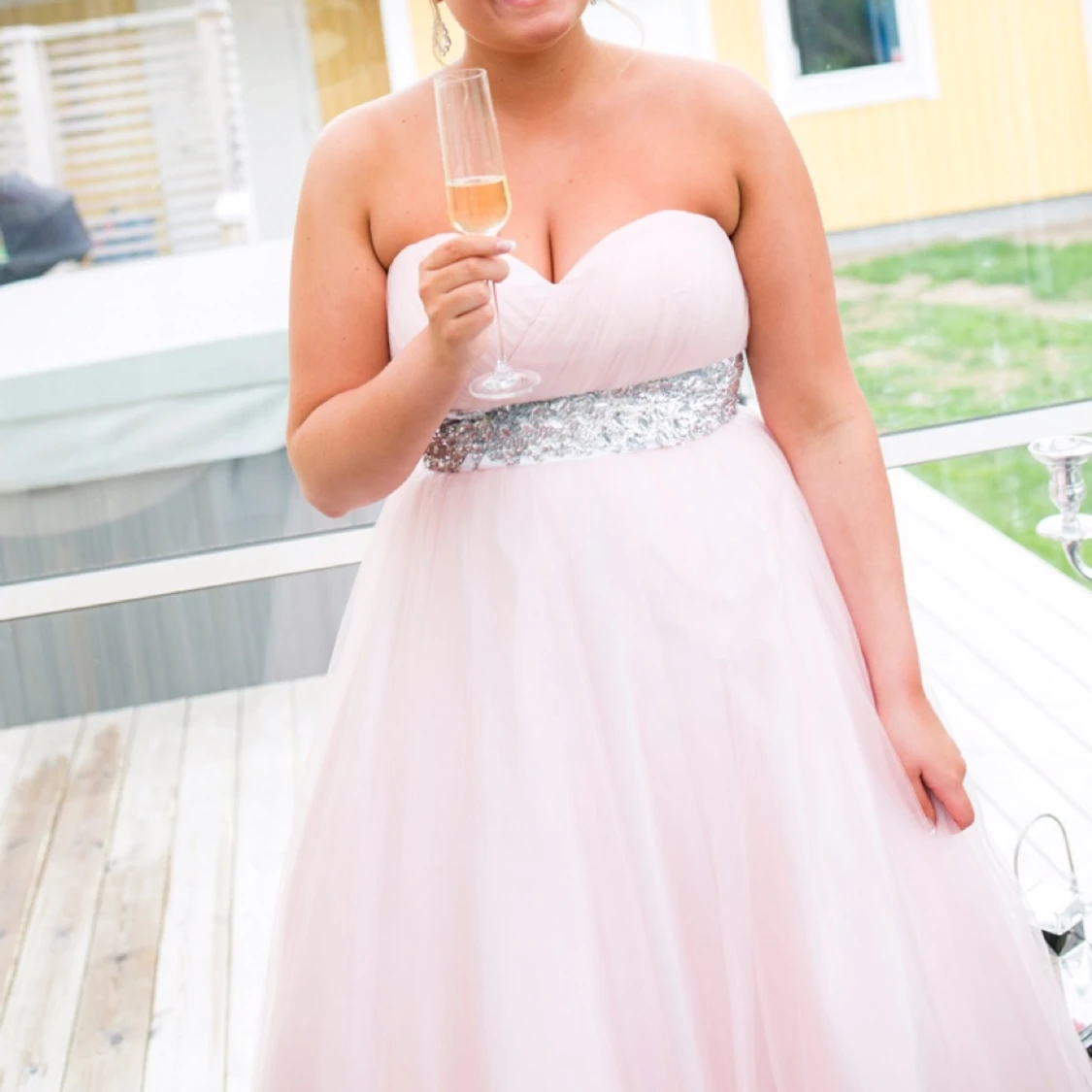 Ljusrosa satin långklänning med öppen rygg - Elegant ljusrosa satin långklänning med axelbandslös design och snygg öppen rygg. Storlek S! 🩷💗💖 Jag är 173cm till referens och det är jag på alla bilderna:) Endast testad , balklänning