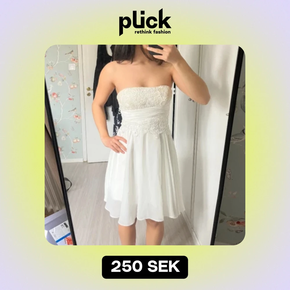 Säljer min studentklänning! Bandeau modell och knyts i ryggen. Storlek S men passar en XS också. 💓