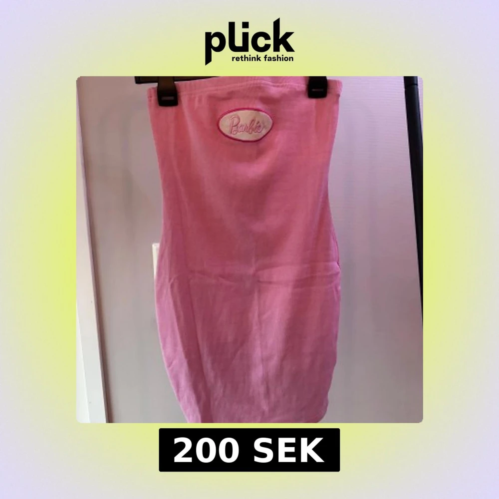 Snygg rosa axelbandslös klänning från Boohoo med Barbie-logga framtill. Klänningen är tight och kort, perfekt för en trendig look. Tillverkad i ett ribbat material som ger en skön passform.