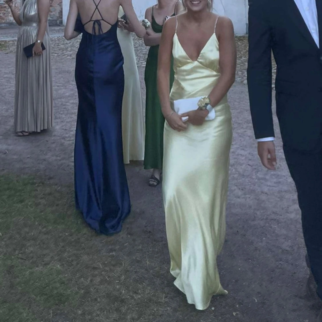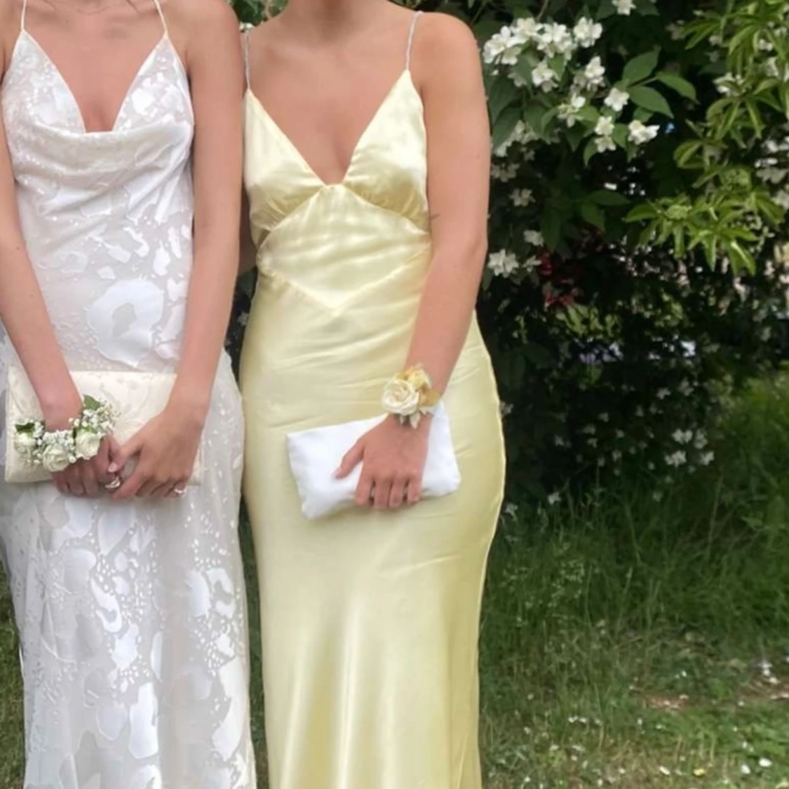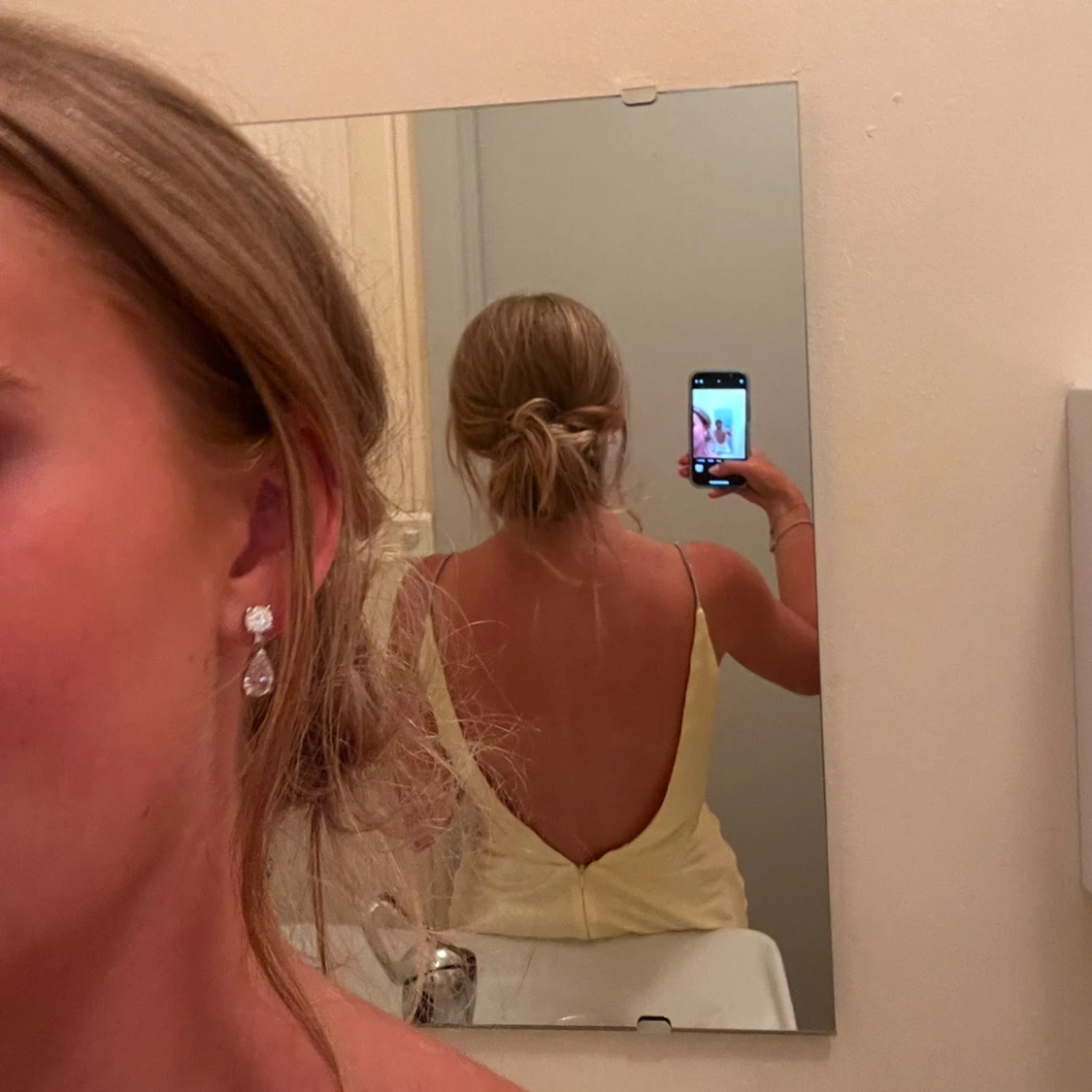 Säljer en helt oanvänd balklänning med lapparna kvar, råkade beställa två stycken! Capri Diamonte Slip Dress från Bardot i färgen Canary Yellow. Jag är 160 och har 5cm klack på alla bilder