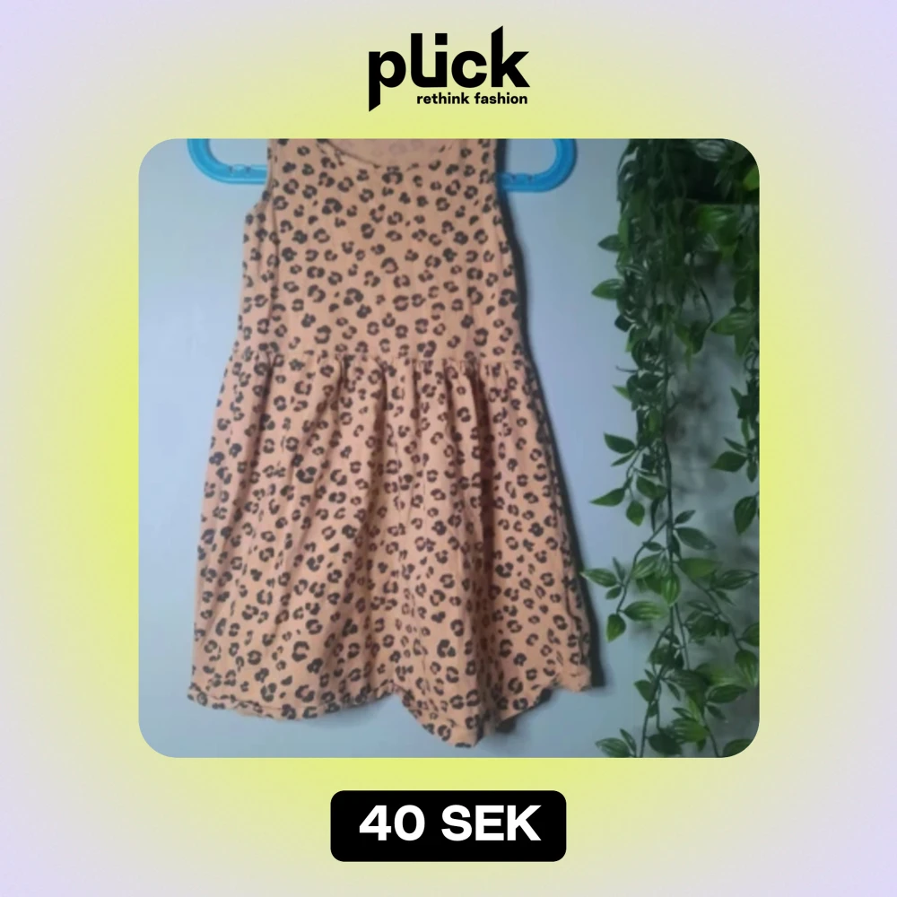 Leopardmönstrad klänning stl 110/116 Inget att anmärka på,normalt.slitage lite ytludd o blekare än nyskick