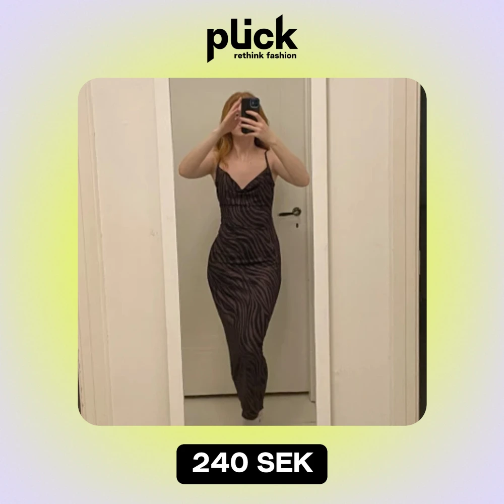 Klänning i svart/brunt zebra mönster. Använd enbart fåtal gånger och är i perfekt skick.