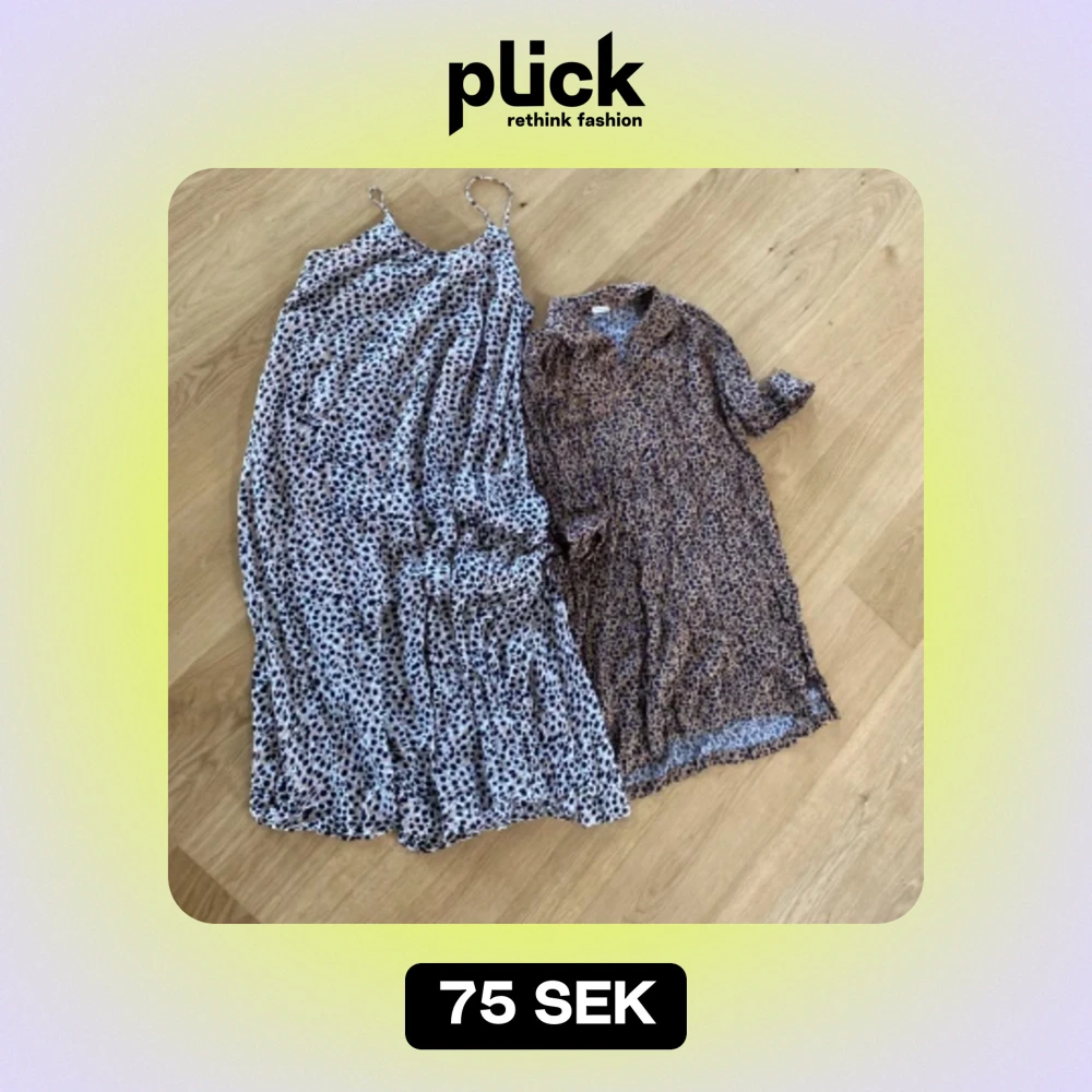 Säljer två snygga leopardmönstrade klänningar. Den ena är en långklänning med smala axelband och den andra är en kortklänning med krage och korta ärmar. Båda klänningarna är perfekta för sommaren och festliga tillfällen. De är i bra skick och redo för nya ägare!