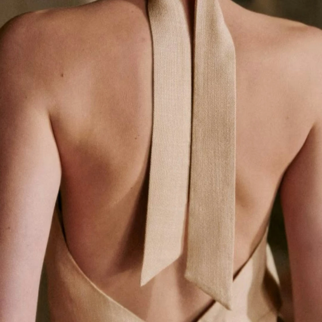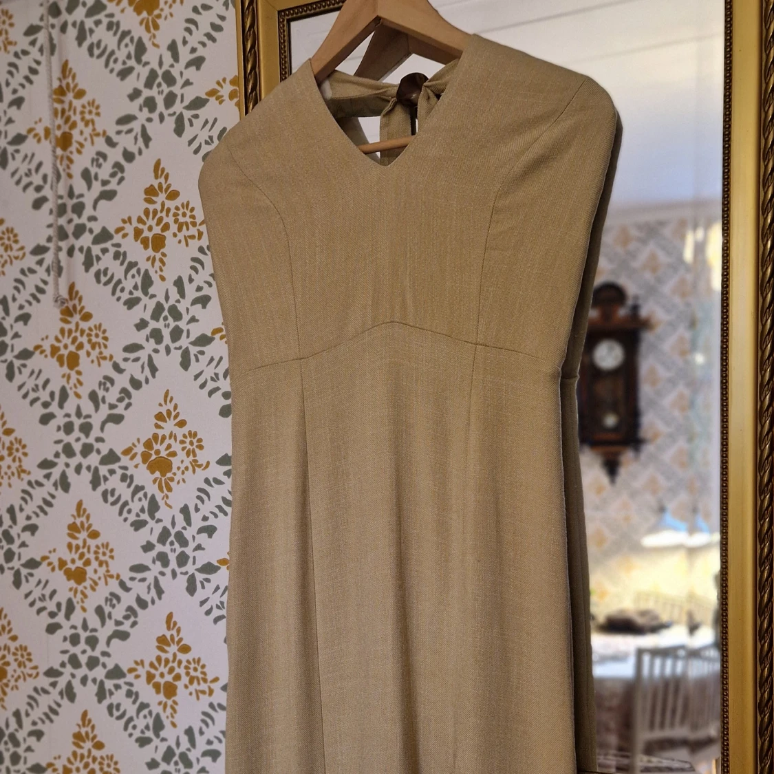 Sézane mariama dress storlek 38. Stilren beige långklänning med halterneck och knyt i nacken. Klänningen har en snygg slits framtill, öppen rygg och figurnära passform. Viskosklänning, perfekt för sommarens varma dagar. Ny med lappar, inga anmäkningar. nypris 229 €