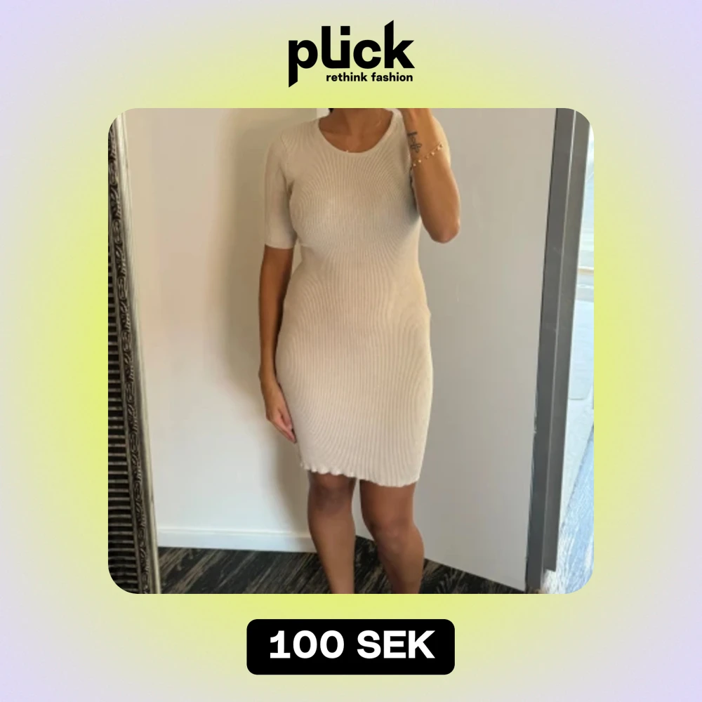 Beige enkel klänning, snygg vardaglig. Fin till skolan och jobbet.