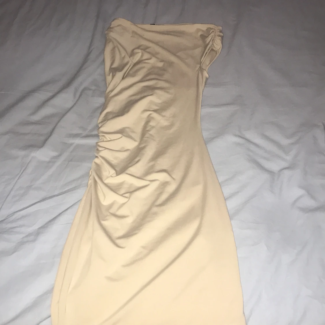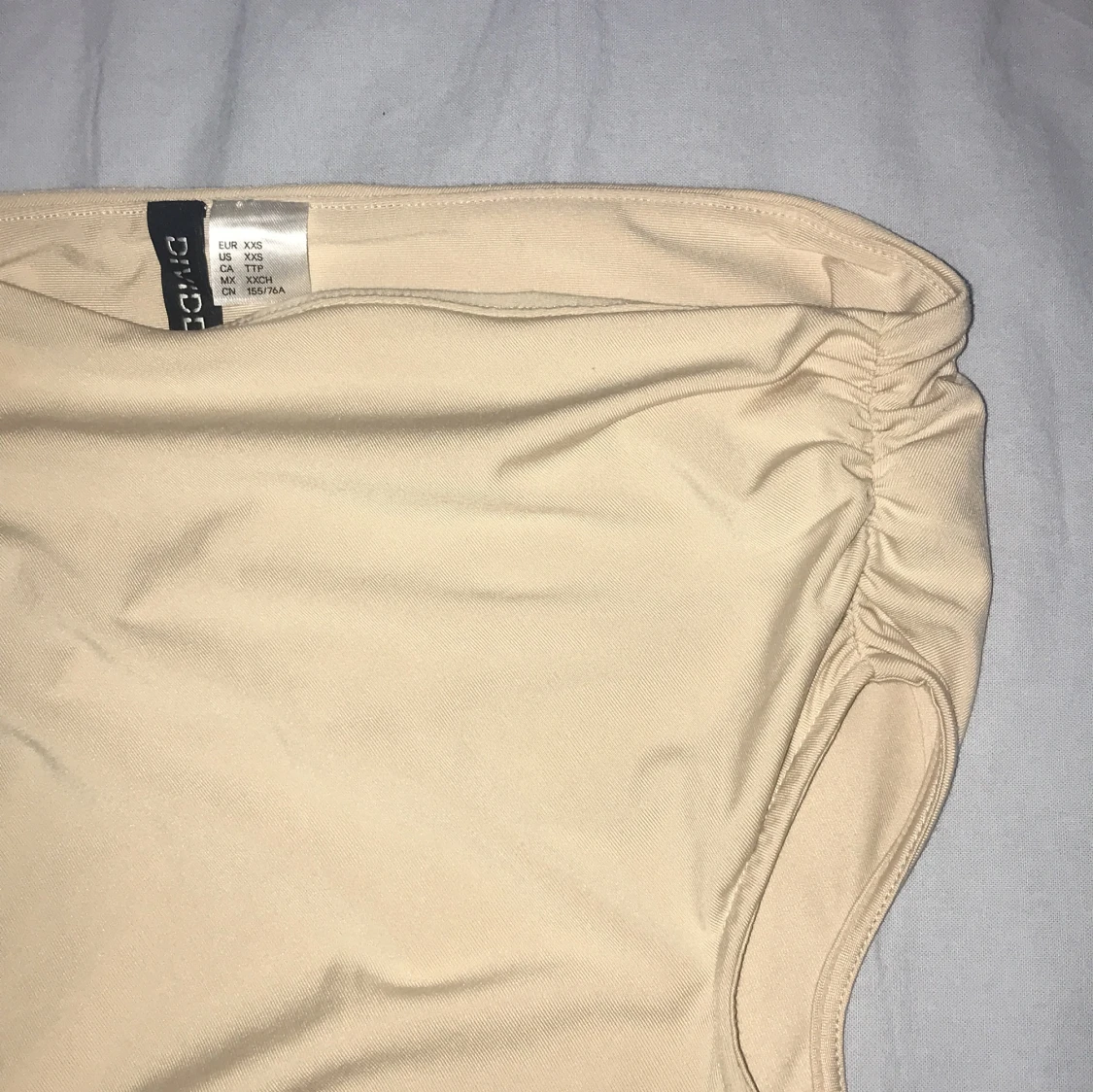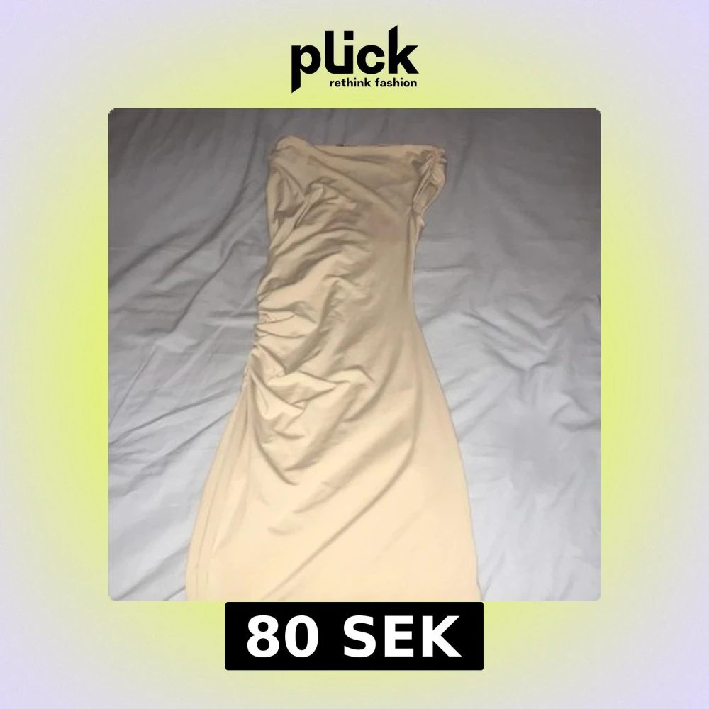 Snygg beige kortklänning från Divided med draperad effekt på ena sidan. Klänningen är ärmlös och har en figurnära passform som framhäver siluetten. Perfekt för dig som gillar stilrena och trendiga plagg.