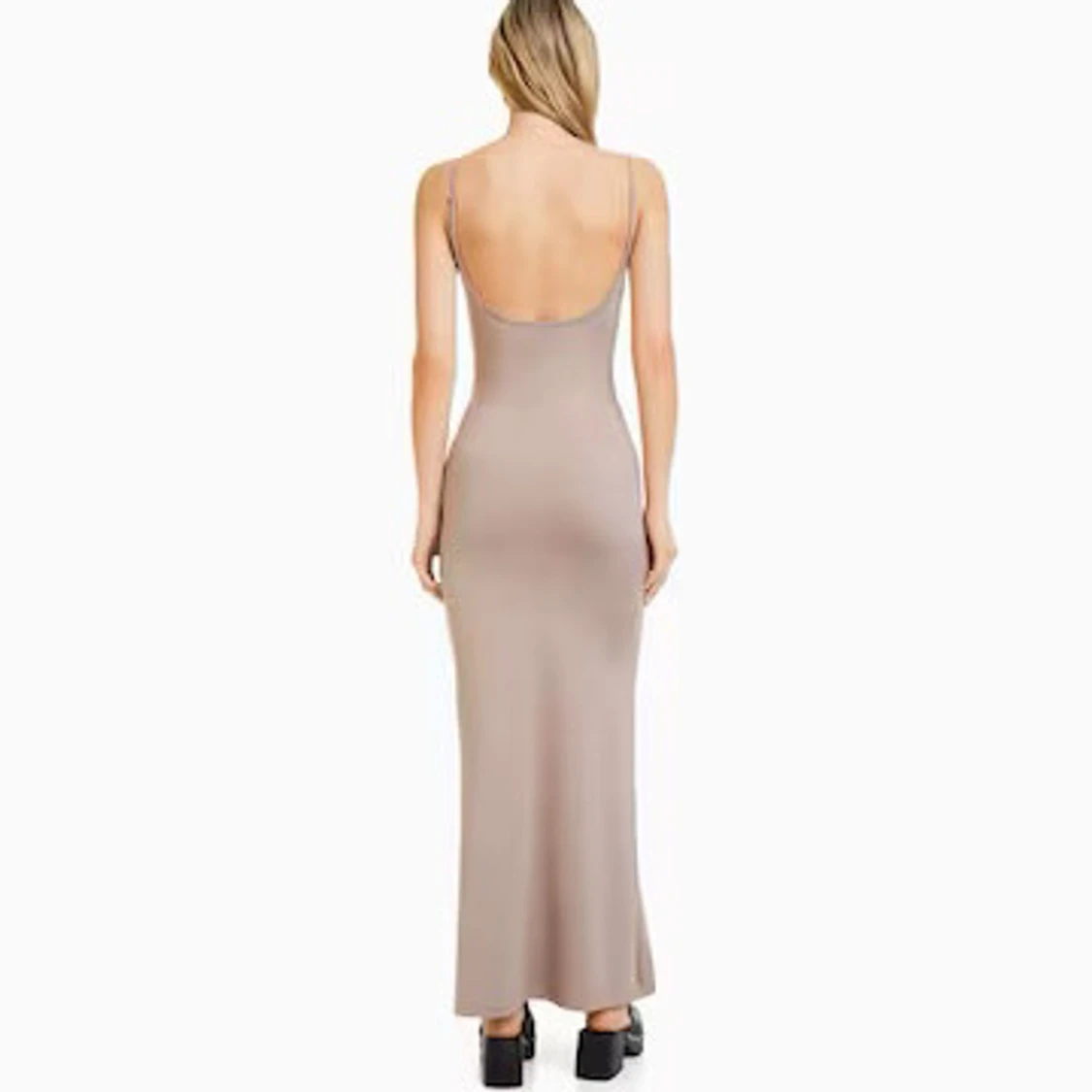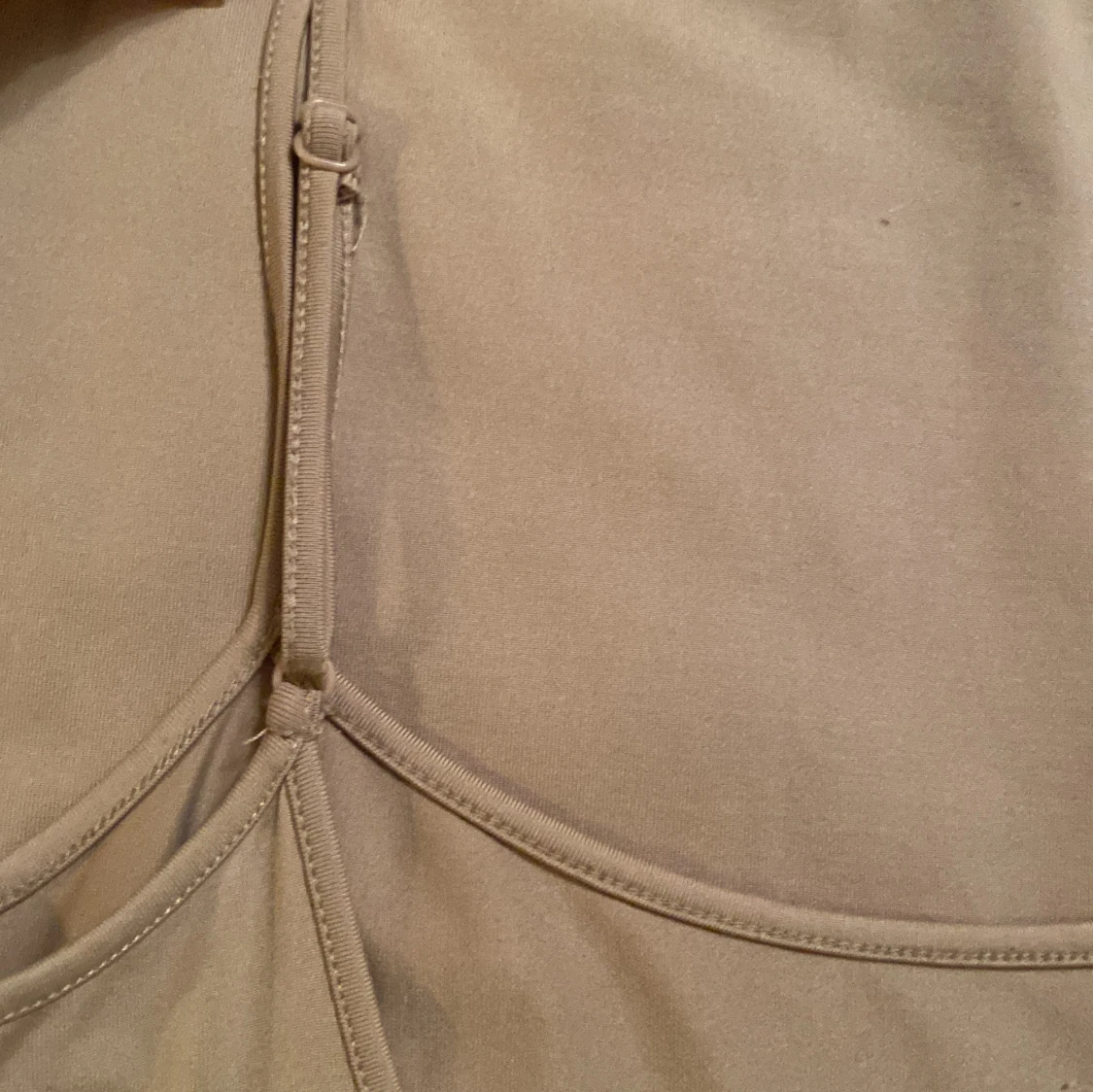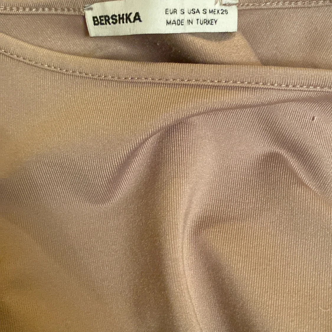 Snygg beige långklänning från Bershka med smala axelband. Perfekt för en stilren look. Tillverkad i ett mjukt och bekvämt material. Har nästan aldrig använts.
