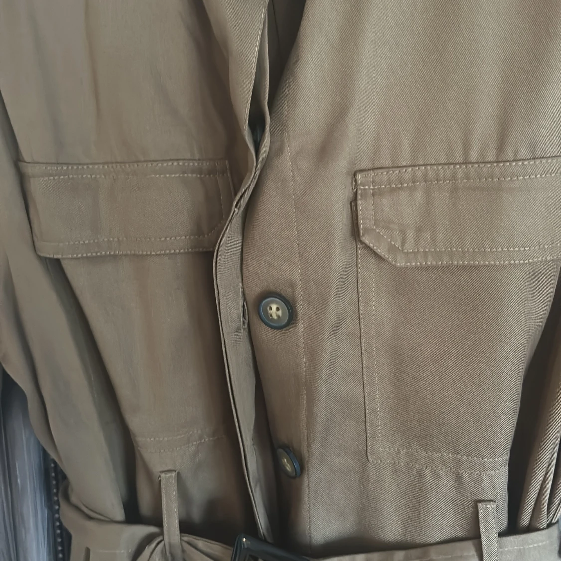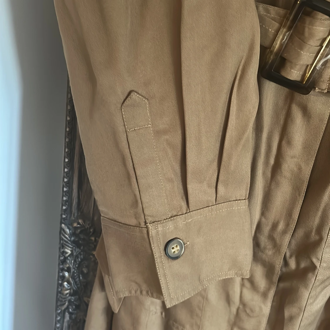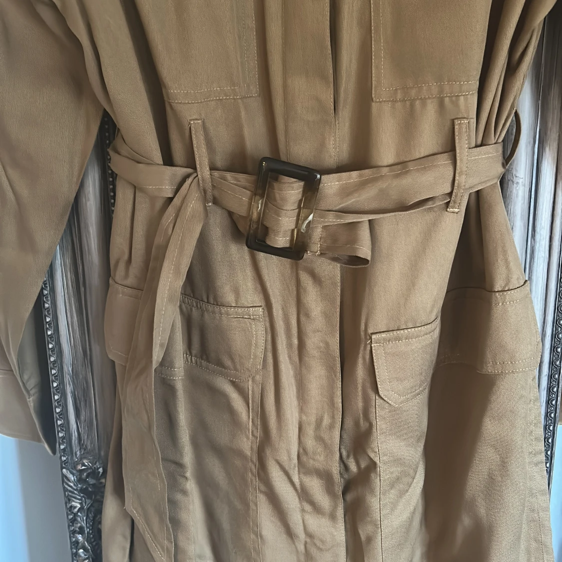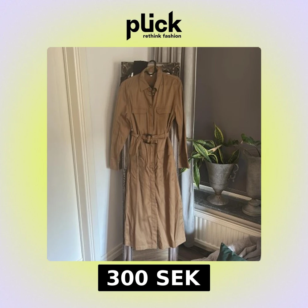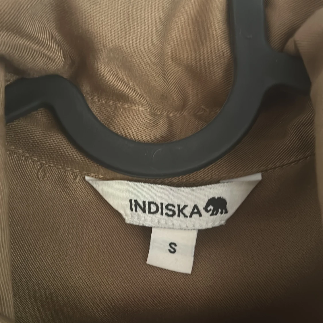 Snygg beige långklänning från Indiska med långa ärmar, knappar framtill och bälte i midjan. Klänningen har stora fickor på bröstet och framtill, samt klassisk krage. Perfekt för dig som gillar stilrena och tidlösa plagg.
