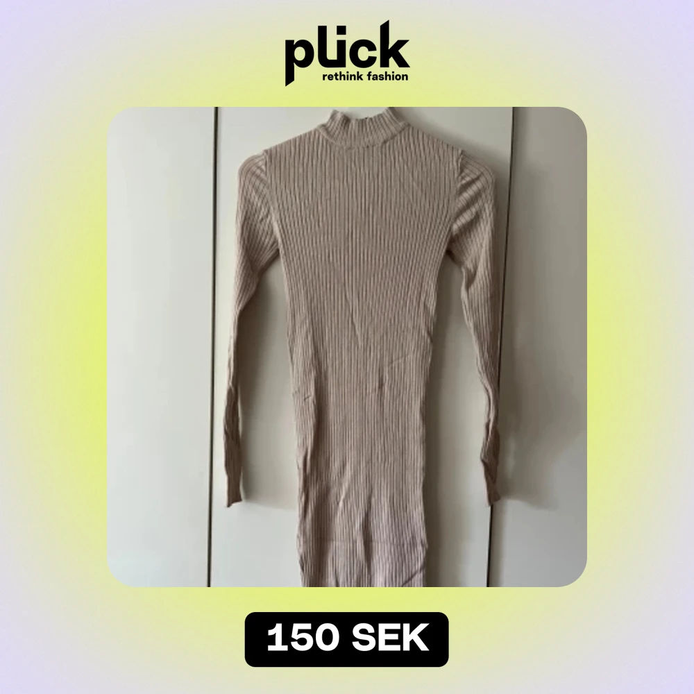 Säljer en superfin beige ribbad klänning från Amisu. Den är långärmad och har en tight passform som verkligen framhäver figuren. Perfekt för höst och vinter, och kan stylas både upp och ner beroende på tillfälle. Klänningen är i nyskick och redo för en ny garderob!