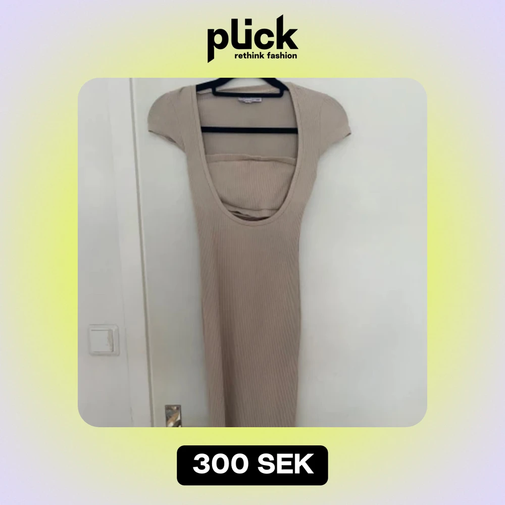 Säljer en superfin beige ribbad klänning med korta ärmar och en snygg slits på sidan. Den har en djup, rundad urringning som ger en chic look, den i mitten ska vara som en liten tub topp som är kopplad till klänningen vilket gör det så fint. Perfekt för både vardag och fest! Storlek XS, PRIS KAN DISKUTERAS!
