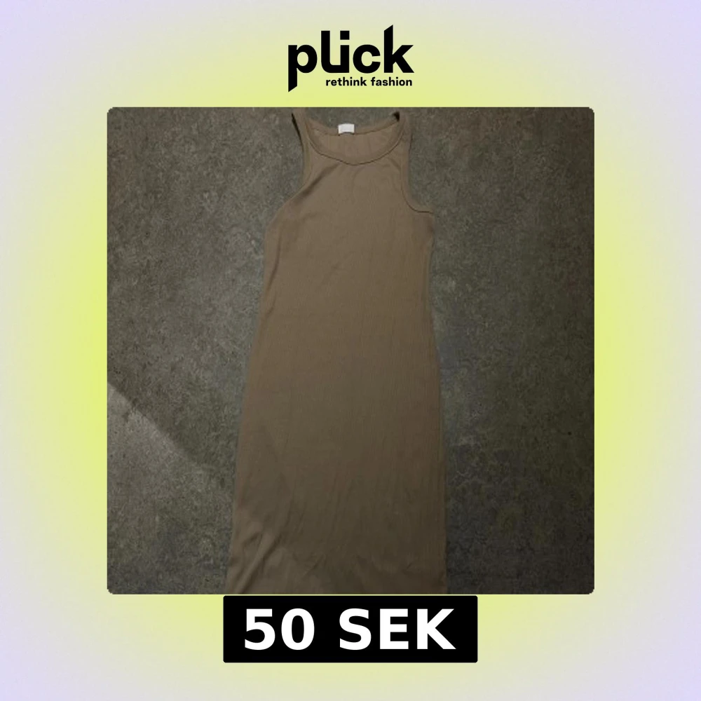 En enkel och stilren beige klänning med ribbad struktur. Modellen är ärmlös och har en tight passform med rund halsringning. Storlek M från Pernilla Wahlgrens kollektion. Använd fåtal gånger. Säljer för 50kr