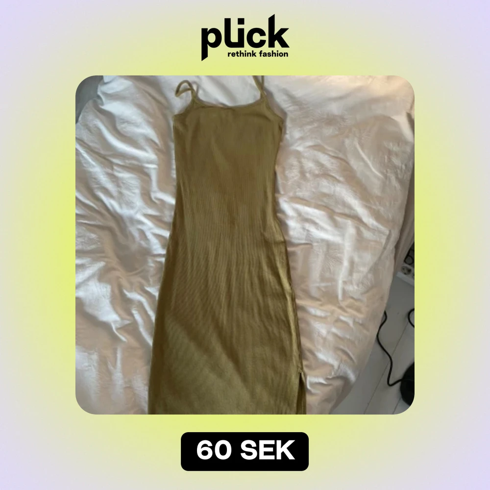 Säljer en superfin olivgrön ribbad långklänning. Den är ärmlös med smala axelband och har en slits längst ner. Perfekt för både vardag och fest! 💫