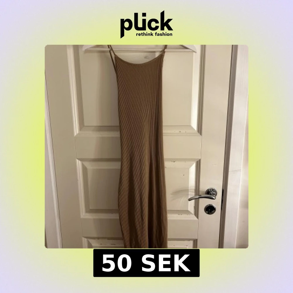 Säljer en stilren beige ribbad långklänning med smala axelband och snygg snörning i ryggen. Perfekt för en avslappnad och chic look. Passar bra till både vardag och festliga tillfällen.