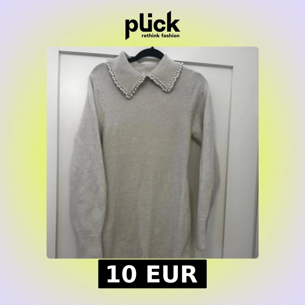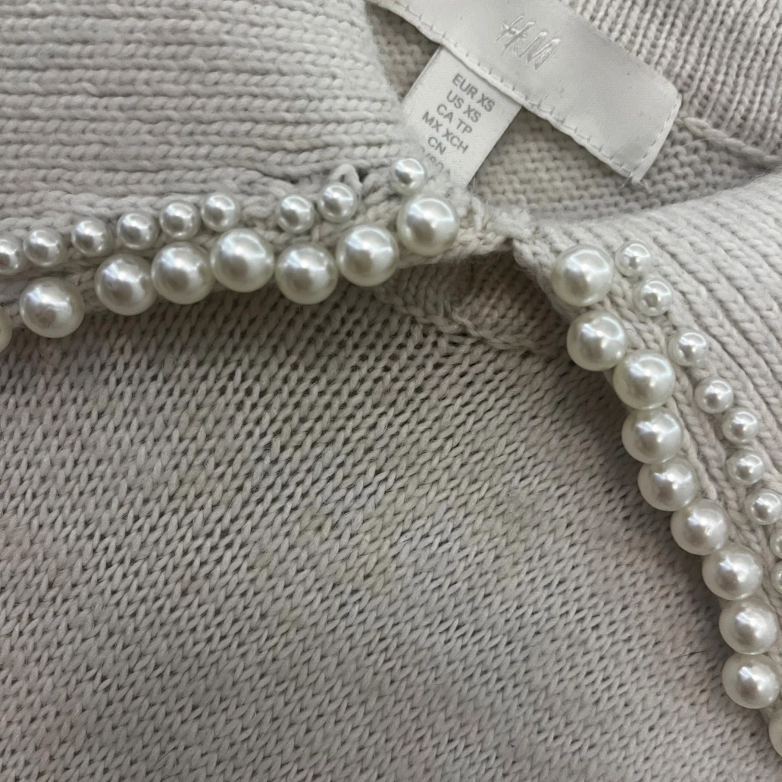 Supersöt beige stickad klänning från H&M med en krage dekorerad med pärlor. Storleken xs