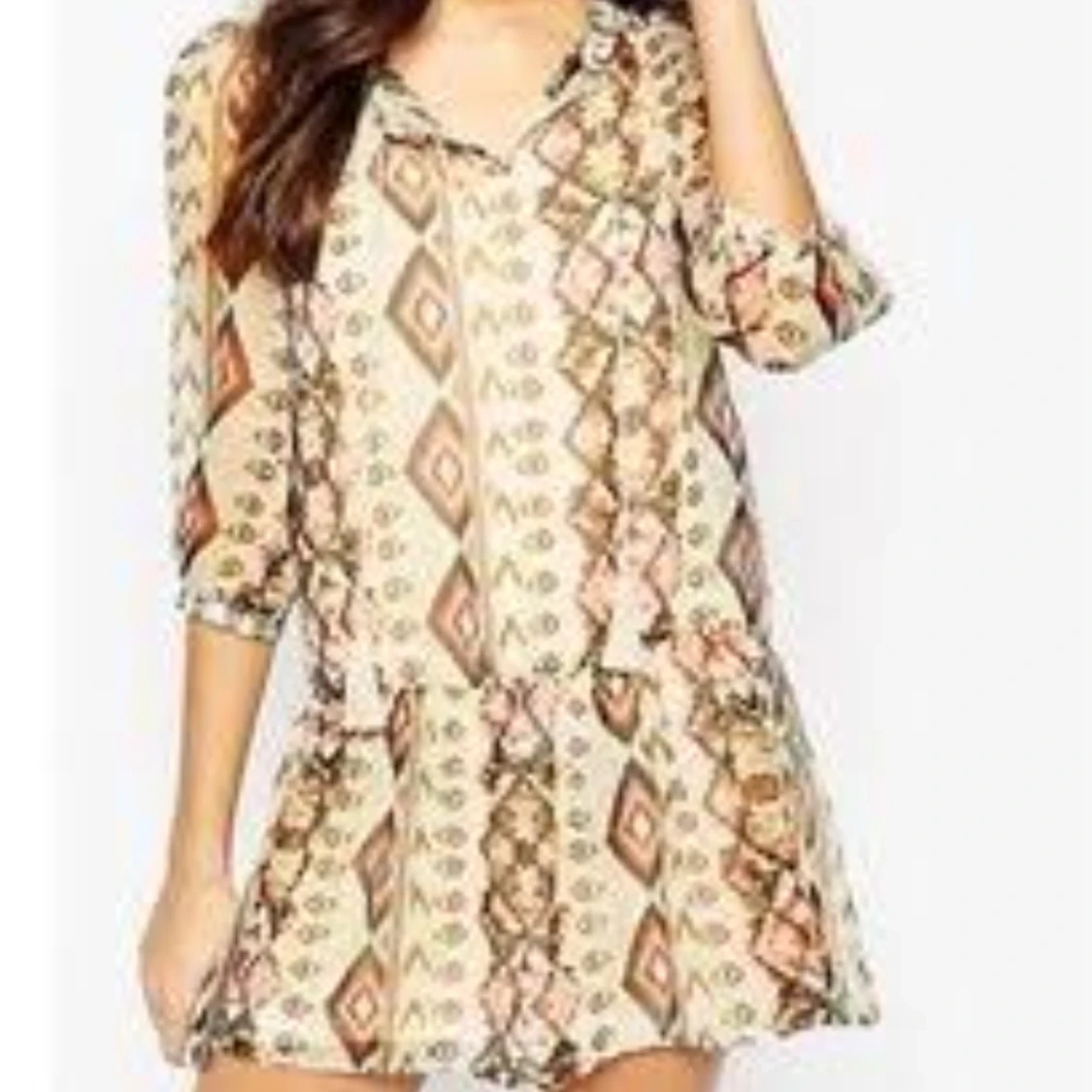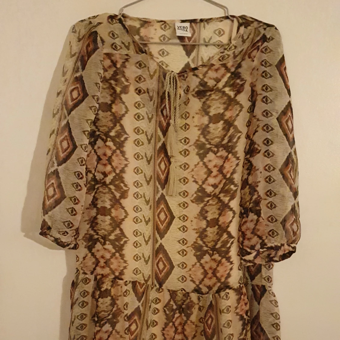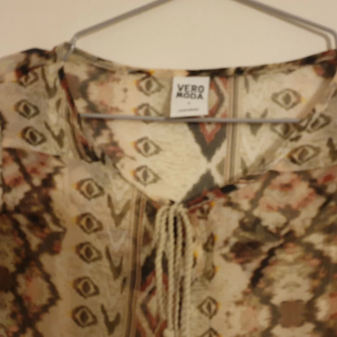 Supersöt klönning!! Paisleymönstrad i beige, rosa och brunt. Halvtransparent med beige underklänning. Från Vero Moda. Använd men i gott skick 🤗