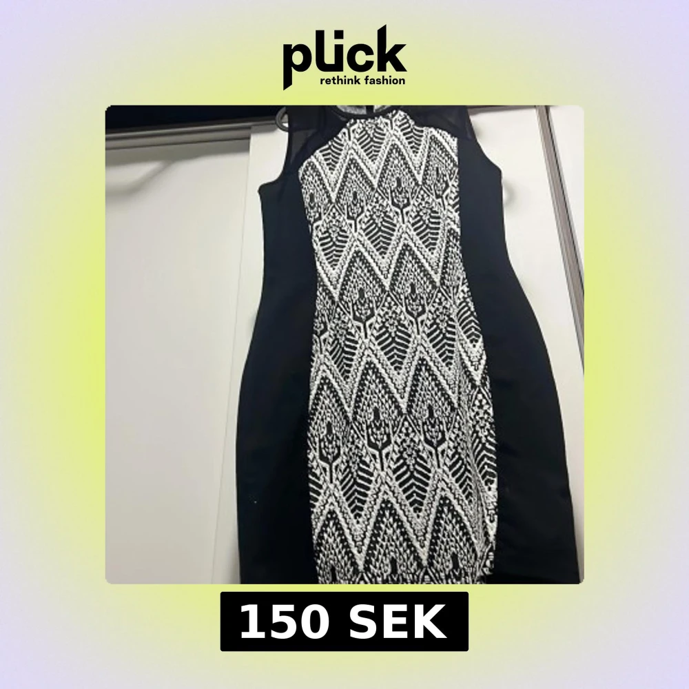 Snygg svartvit kort klänning från Divided med grafiskt mönster framtill och meshdetaljer vid axlarna. Ärmlös modell med figurnära passform och rund halsringning. Perfekt för dig som gillar att sticka ut med coola kontraster och unika detaljer. Passar väldigt tight och snyggt på! Passar då M men också L
