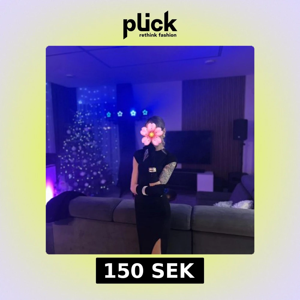 Säljer en svart långklänning med tight passform och hög slits på ena sidan. Klänningen har korta ärmar och en stilren, minimalistisk design. Perfekt för dig som vill ha en klassisk och elegant look.