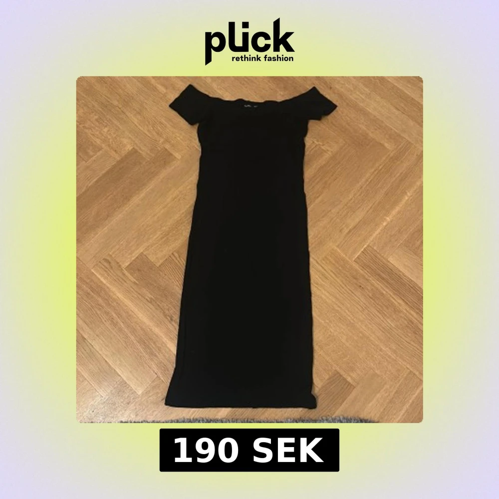 Svart långklänning från Bershka med offshoulder-design. Klänningen har en smickrande, figurnära passform och är tillverkad i ett mjukt, stretchigt material. Perfekt för dig som gillar en stilren och enkel look med en twist.