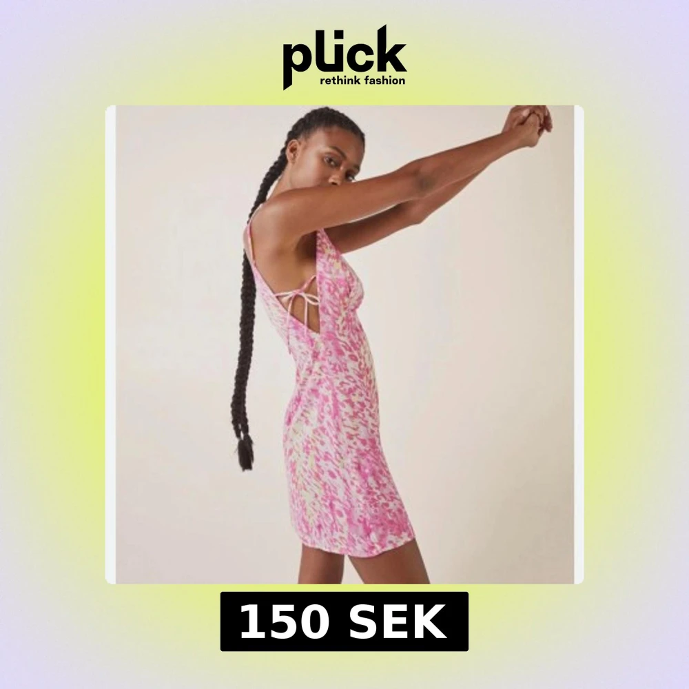 Rosa och vit leopardmönstrad klänning med smala axelband och snörning i sidorna. Klänningen har en figurnära passform. Säljer pga att den är för liten i bysten för mig. Alla lappar är kvar på den och aldrig använd.