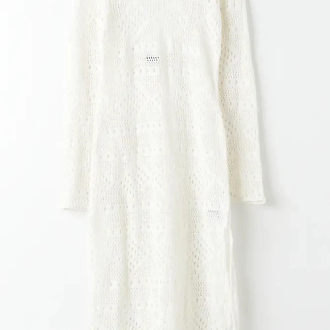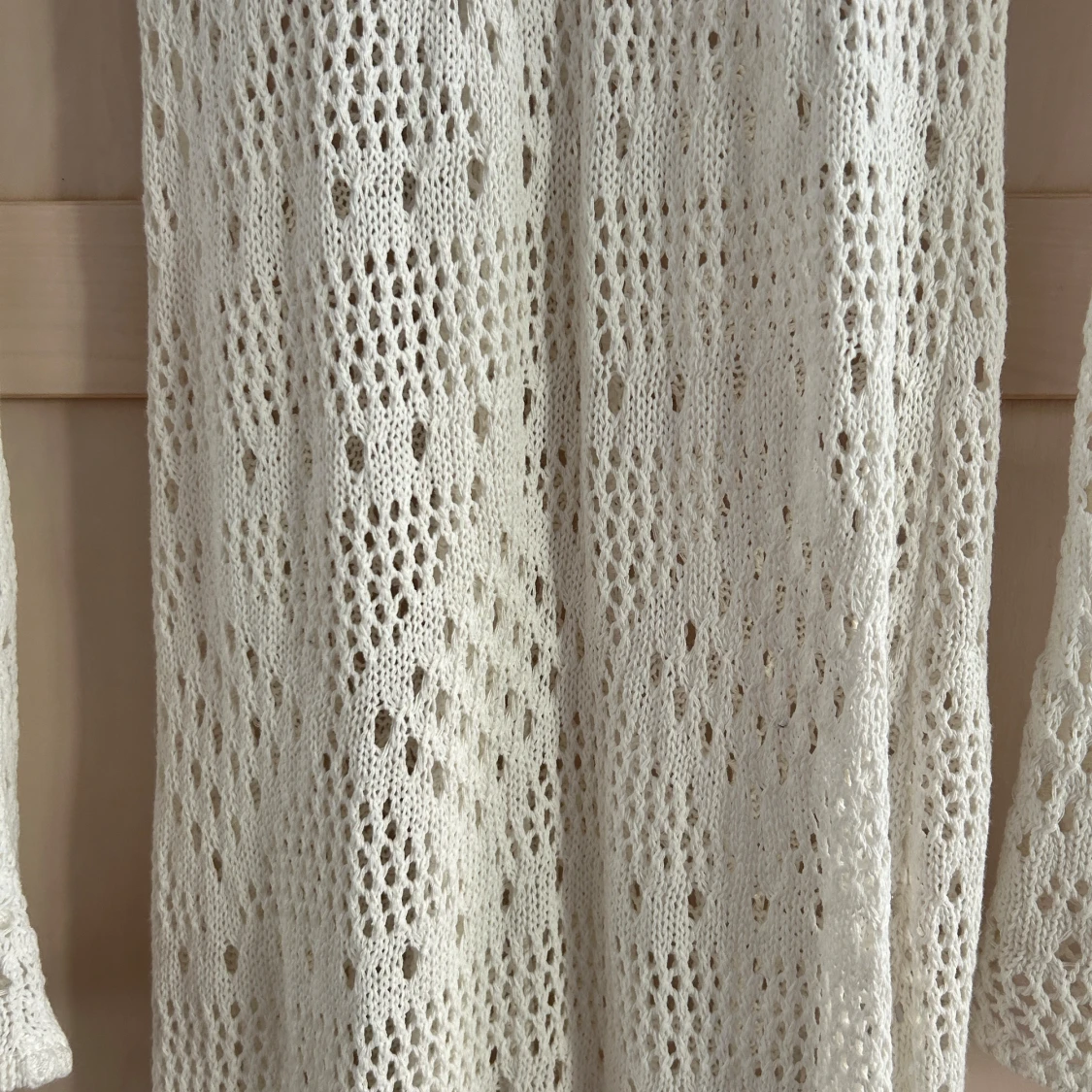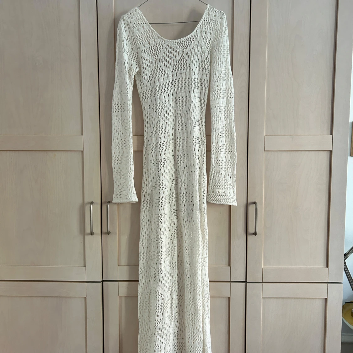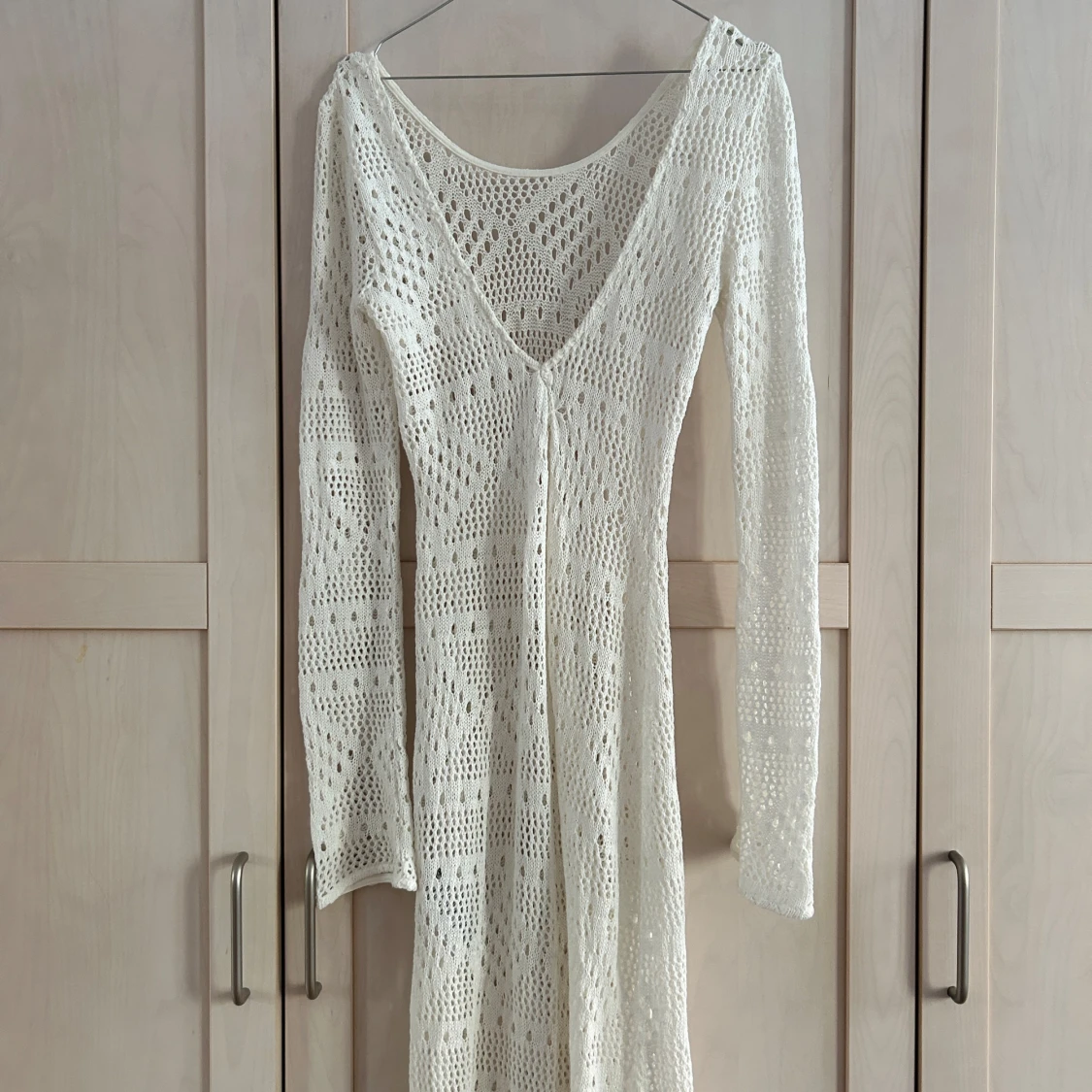 Bianca ingrosso sommar collection från GinaTricot,släpp några år tillbaka. Säljer en vit stickad långklänning med u-ringning och lång ärm. Klänningen har ett snyggt hålmönster och är figurnära i modellen. Djupare ringning baktill med en slitt nertill. Aldrig använt.