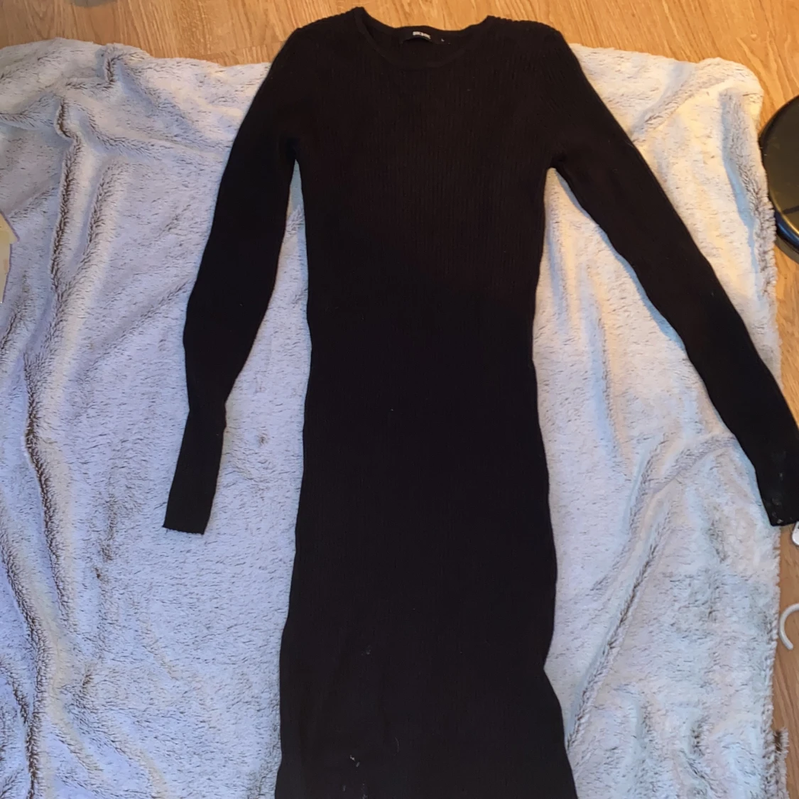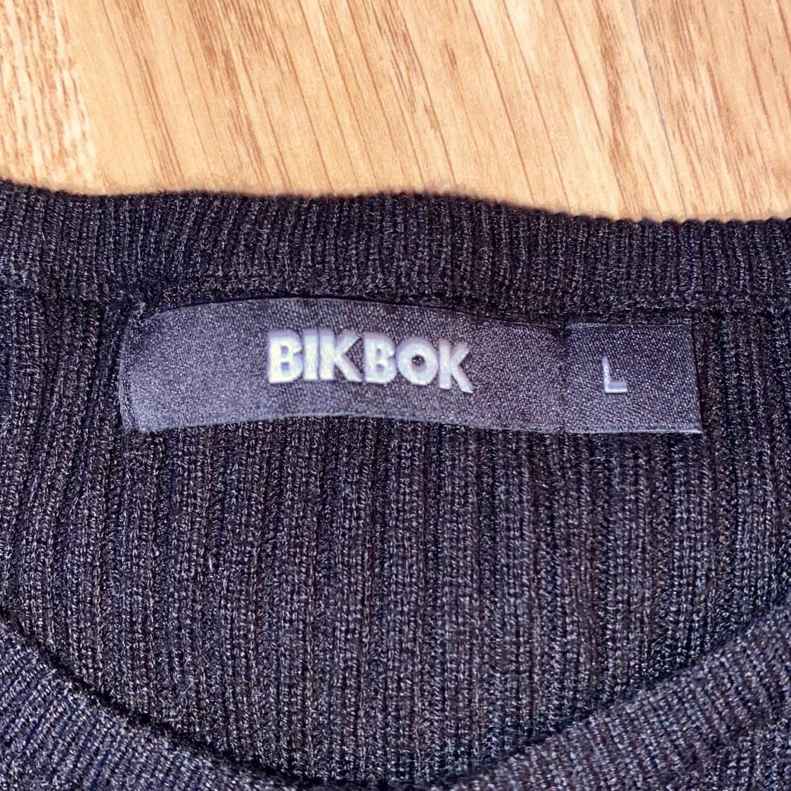 En svart ribbad kroppad klänning från bikbok storlek L, väldigt stretchig, oanvänd