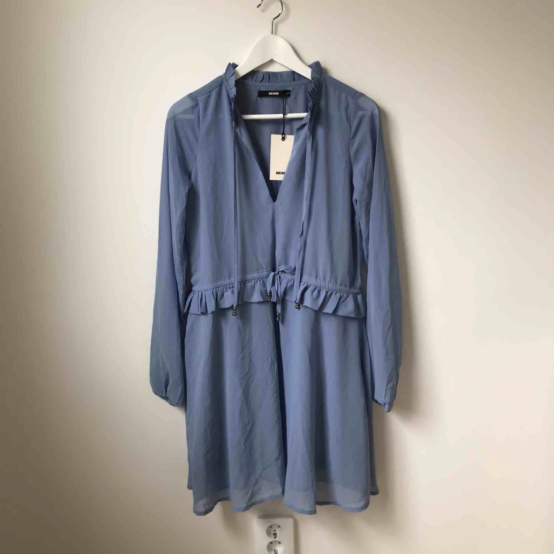 Ljusblå klänning som är helt oanvänd med prislappen kvar. Nypris 349kr. Köparen står för fraktkostnad enligt postens portotabell.