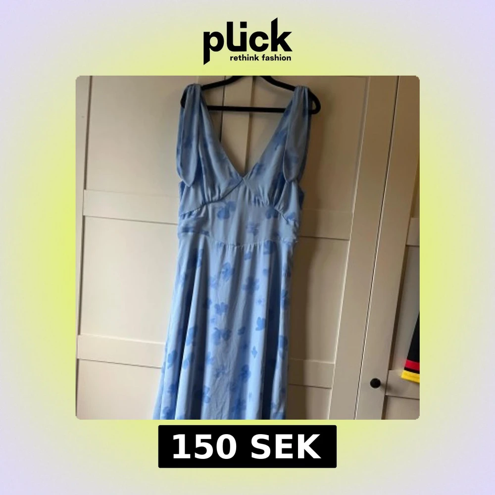 Superfin ljusblå långklänning med blommigt mönster och djup v-ringning både fram och bak. Säljer den då den inte passade mig 🌸