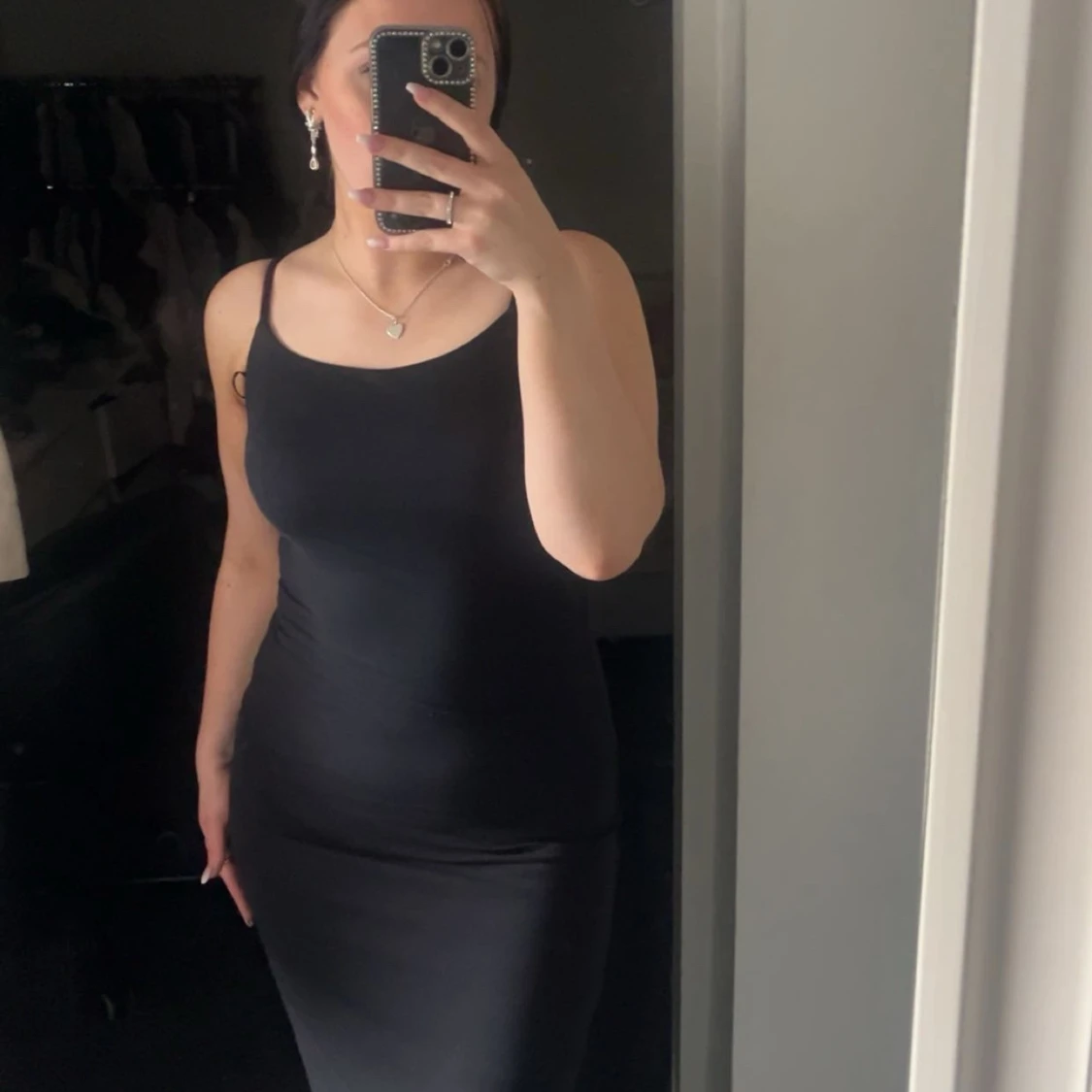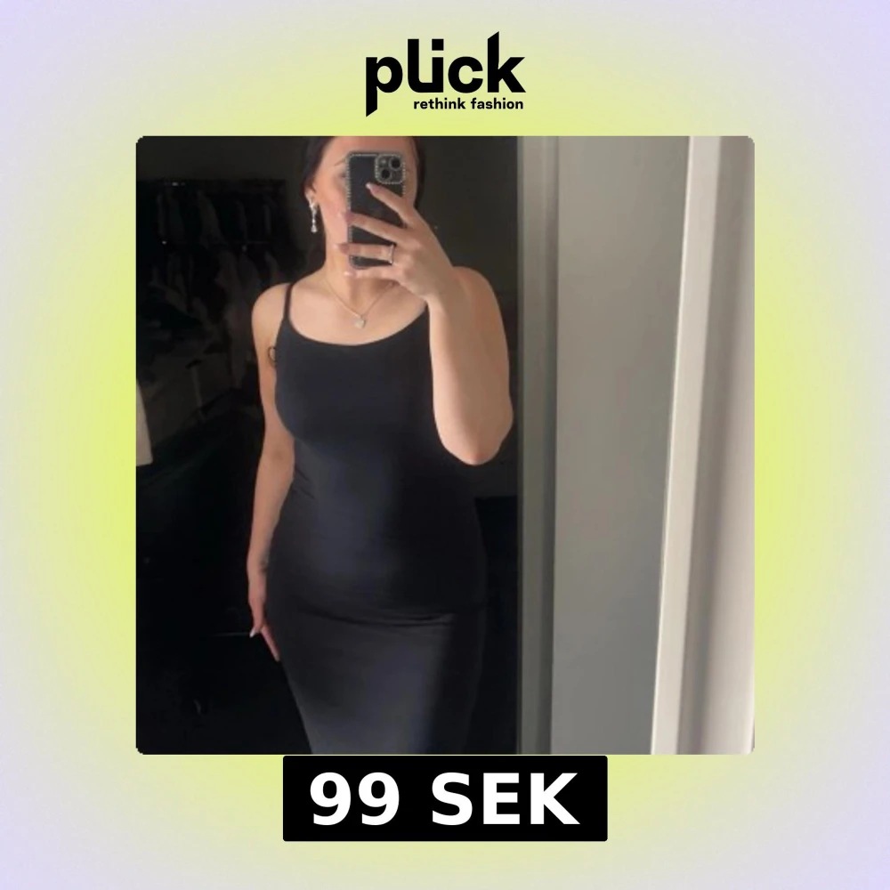 Lång klänning med smala axelband, öppen i ryggen. Köpt på Bikbok! Storlek: M